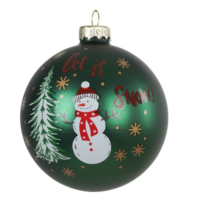 Pallina di Natale in Vetro Verde con Pupazzo di Neve 2 Misure
