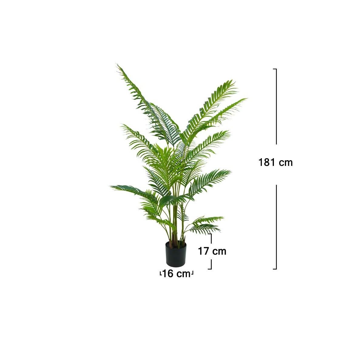 Rivisita l'atmosfera della tua casa o del tuo ufficio con la sensazione lussureggiante e l'ambiente tropicale che questa Palma Areca Artificiale evoca. Con questa pianta, godrai della bellezza senza tempo delle piante tropicali, senza il fastidio della manutenzione e con la promessa di una longevità ineguagliabile. Ogni foglia è stata accuratamente progettata per essere il più reale possibile, con una ricchezza di dettagli che creano un effetto visivo che sfida la distinzione tra il naturale e l'artificiale.