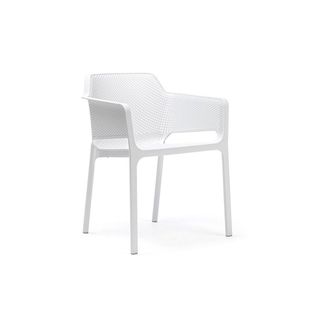 Raffinato relax per Net, monoscocca in resina fiberglass accuratamente bucherellata con un motivo a fori quadrati e raggiati distribuiti in continuità sulla superficie tridimensionale della seduta. Poltrona monoblocco. Polipropilene fiberglass trattato anti-UV e colorato in massa. Finitura opaca. Dotata di piedini antiscivolo. Cuscino disponibile su ordinazione. Resina riciclabile.