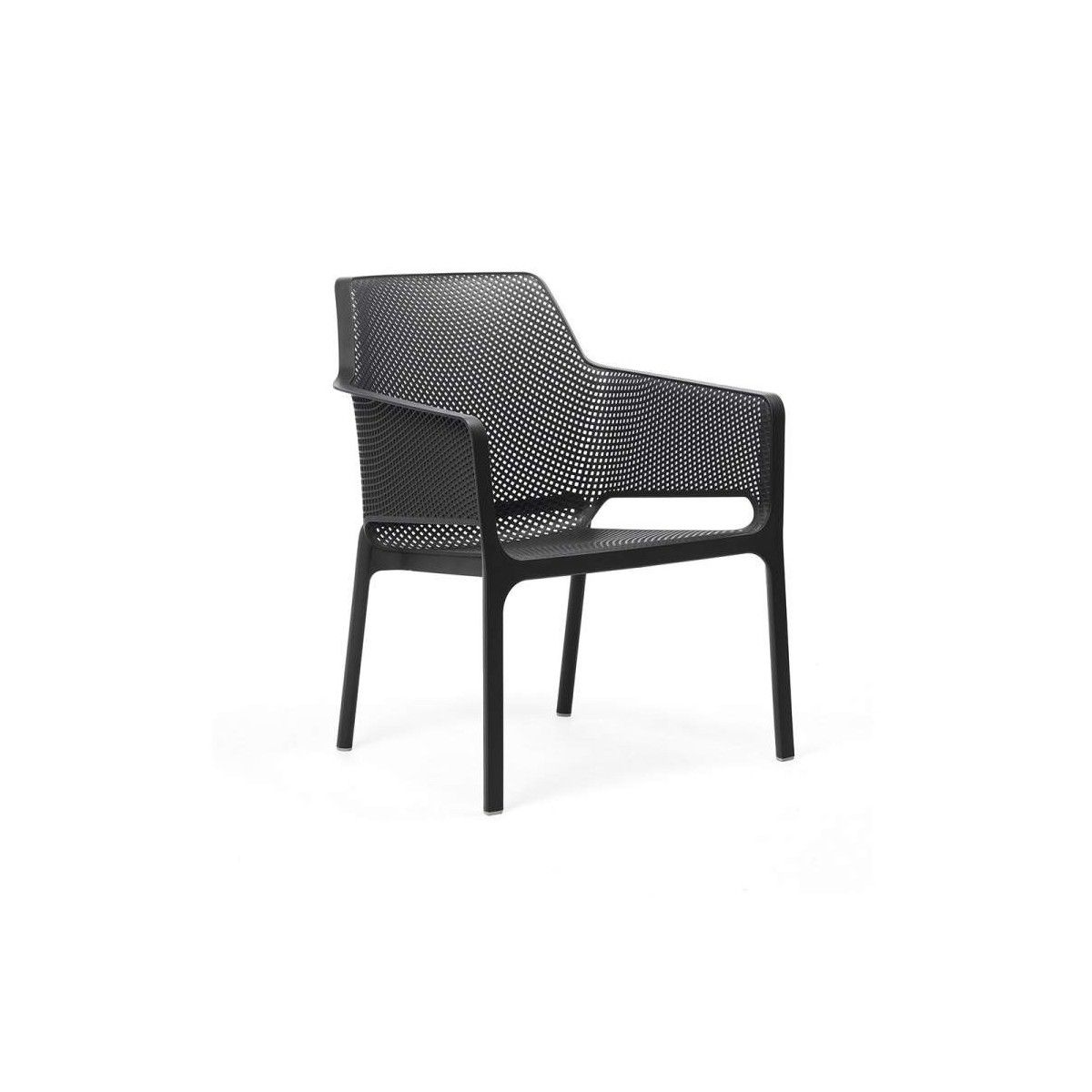 Pluripremiata poltroncina in resina fiberglass corredata di cuscini in tessuto proposti in diverse forme. Decorata da un motivo a fori quadrati e raggiati distribuiti sulla superficie tridimensionale della seduta, Net Relax risulta opaca e piacevole al tatto. Poltrona monoblocco. Polipropilene fiberglass trattato anti-UV e colorato in massa. Finitura opaca. Dotata di piedini antiscivolo. Cuscino disponibile su ordinazione. Resina riciclabile.