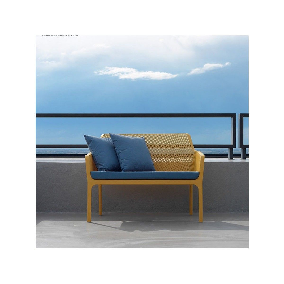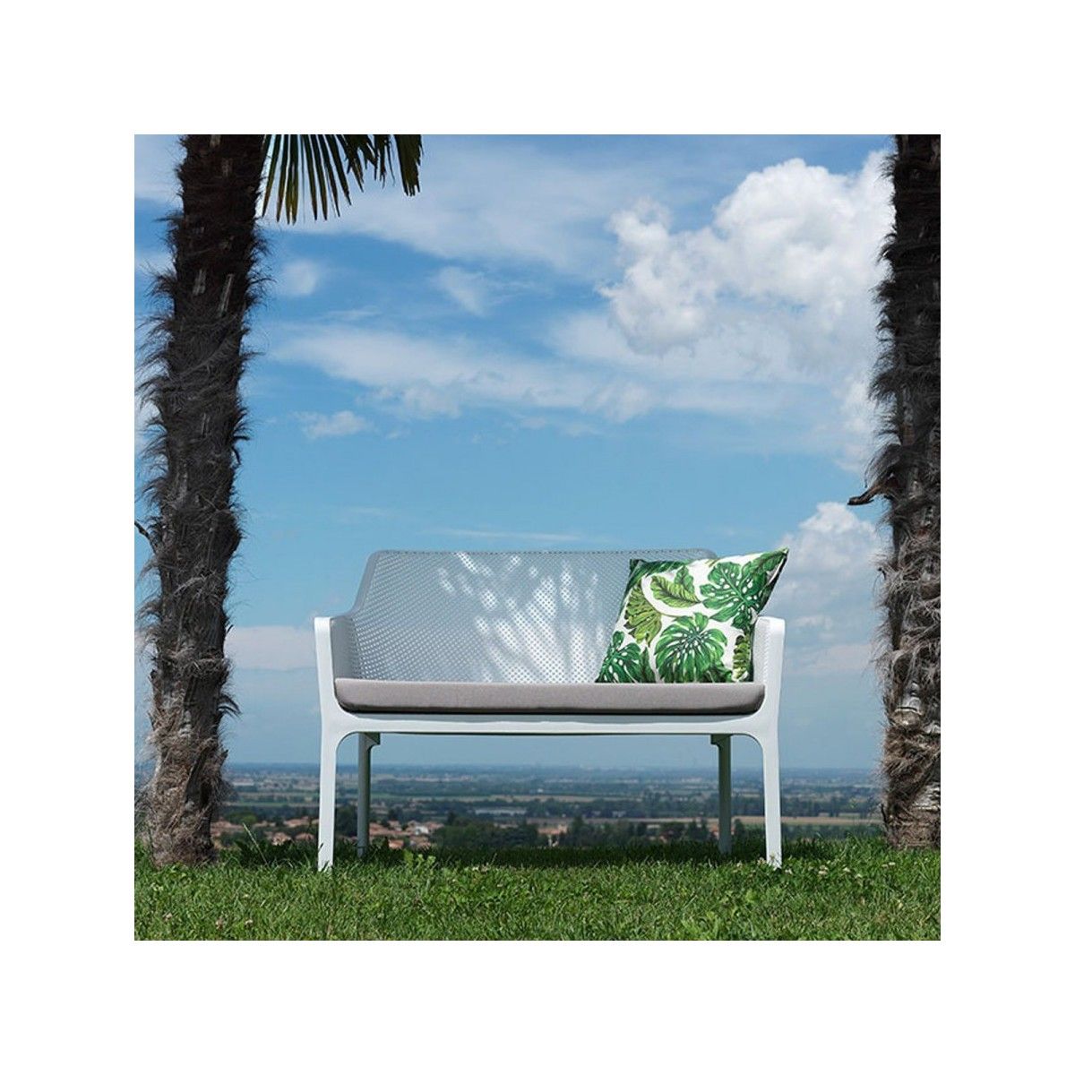 Romantica ed empatica, Net Bench è una panchina per esterni a due posti in resina fiberglass. Caratterizzata da un motivo a fori quadrati e raggiati, presenta linee pulite, profili sottili senza soluzione di continuità e un’ampia gamma di cuscini a corredo. Panchina monoblocco. Polipropilene fiberglass trattato anti-UV e colorato in massa. Finitura opaca. Dotata di piedini antiscivolo. Cuscino disponibile su ordinazione. Resina riciclabile.