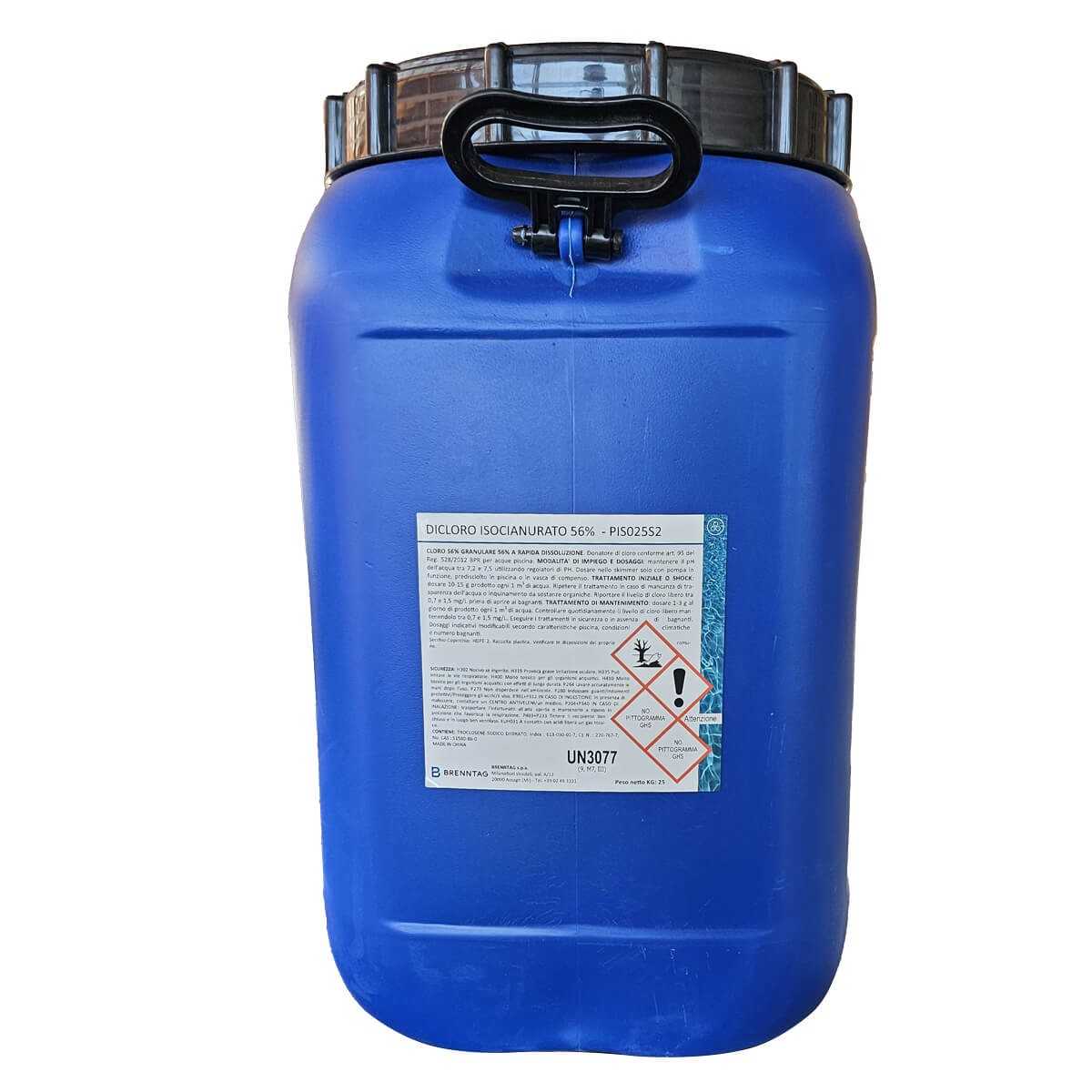 Cloro per Piscina al 56% in Secchio da 25 kg – Trattamento Professionale per Acqua Cristallina