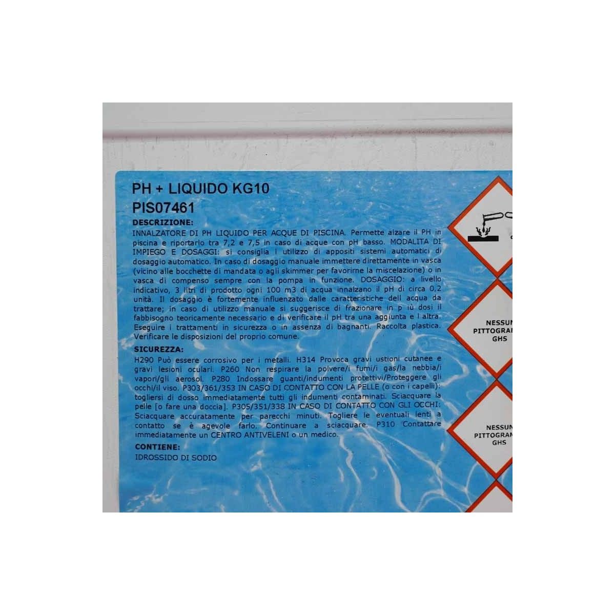 - Dosaggio indicativo: 3 litri ogni 100 m³ aumentano il pH di circa 0,2 unità