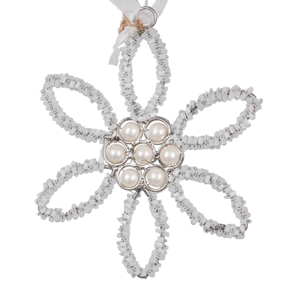 Fiore Natalizio con Perline da Appendere 10 cm
