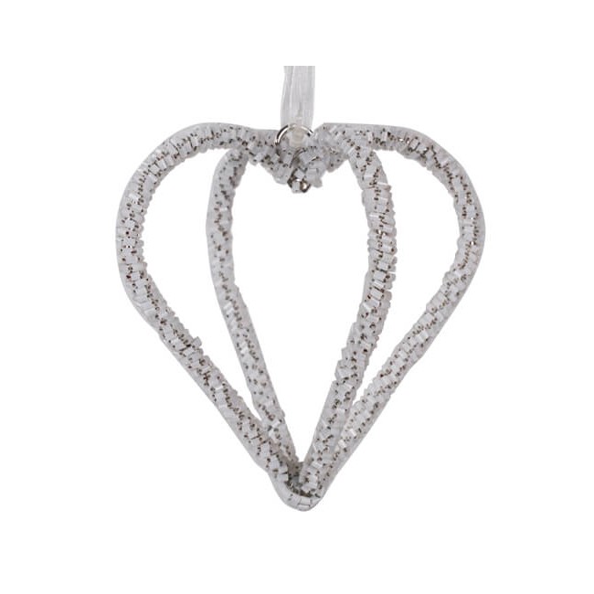 - Cuore decorativo bianco con perline, elegante e luminoso