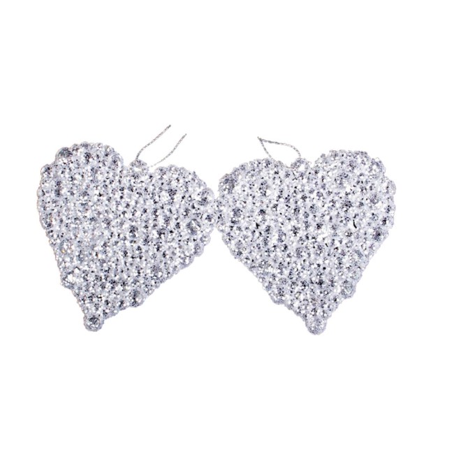 Set 2 Cuori con Perline Effetto Ghiaccio o Platino da Appendere – Decorazioni in Plastica da 9 cm Eleganti e Brillanti