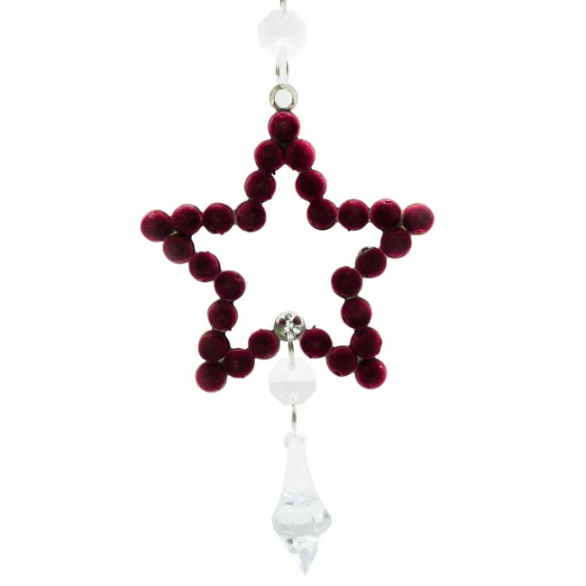 Stella di Natale in Velluto Bordeaux con Pendente a Goccia – 9 cm