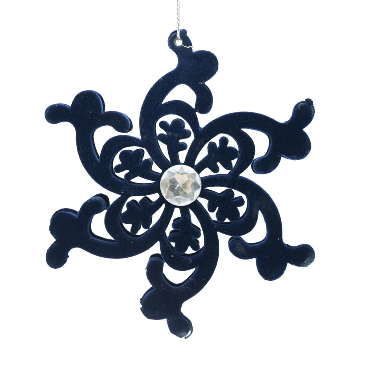 Fiocco di Neve Natalizio 3D in Velluto Blu da Appendere H.12 cm
