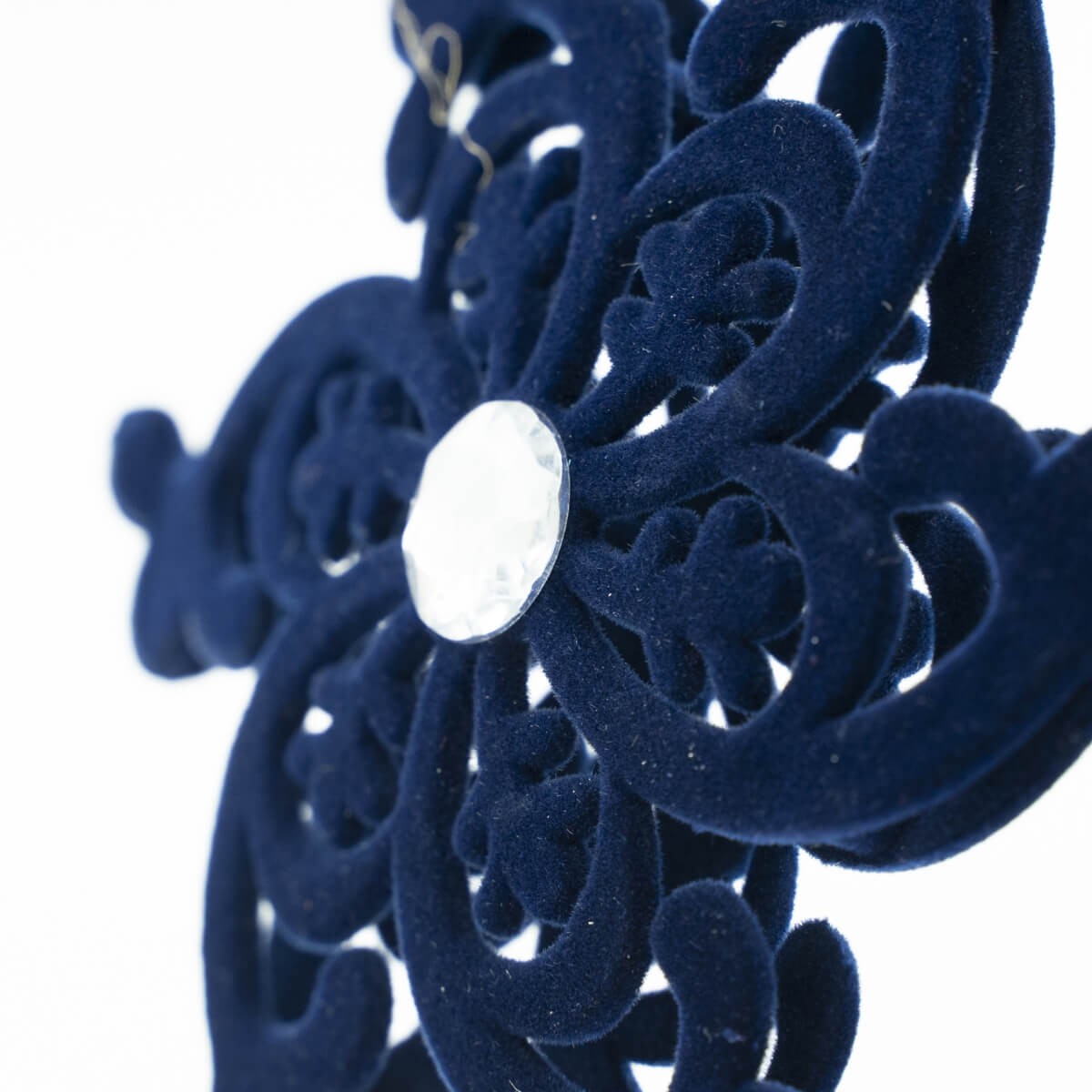 Fiocco di Neve 3D in Velluto Blu con Strass – Decorazione Natalizia da Appendere H.12 cm