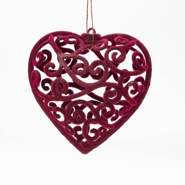 Cuore Natalizio 3D in Velluto Bordeaux da Appendere 8 cm
