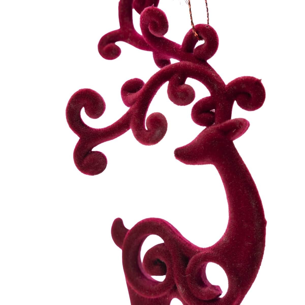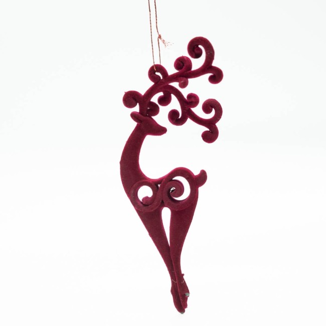 Renna Natalizia Traforata in Velluto Bordeaux da Appendere – H.19 cm