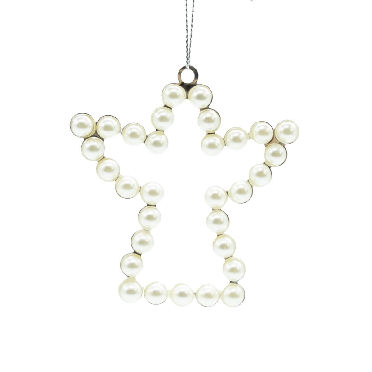 Angelo Natalizio con Perline Bianche da Appendere – Decorazione Elegante 9 cm per Albero di Natale