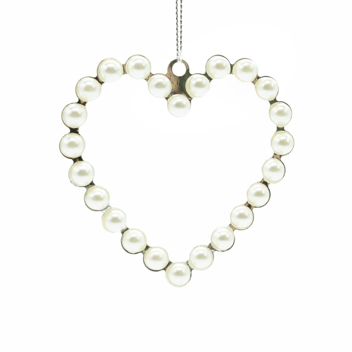Cuore con Perline Bianche da Appendere H.9 cm