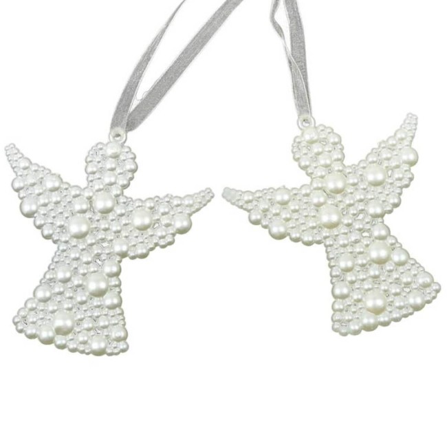 Set 2 Angioletti Natalizi da Appendere in Plastica Perlati