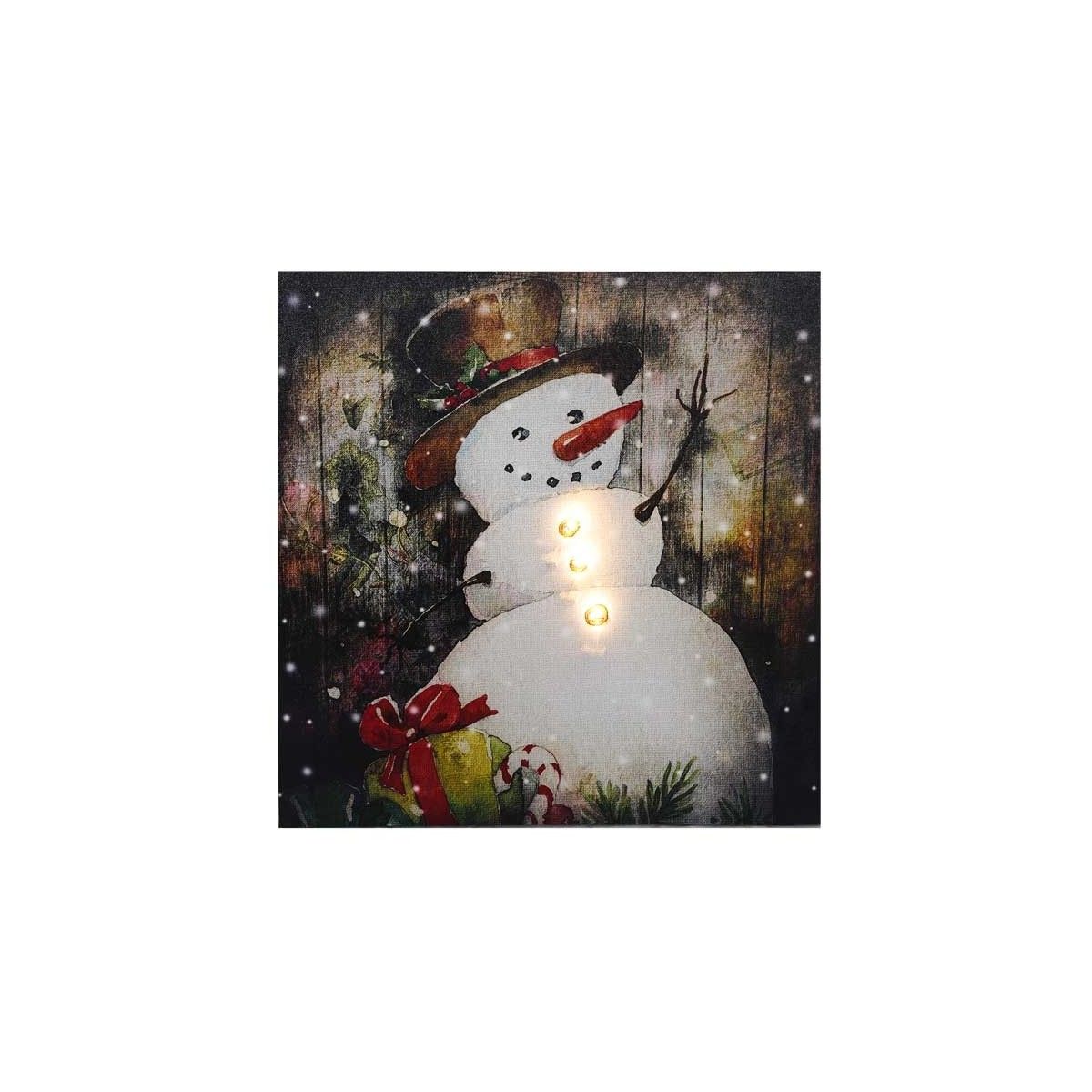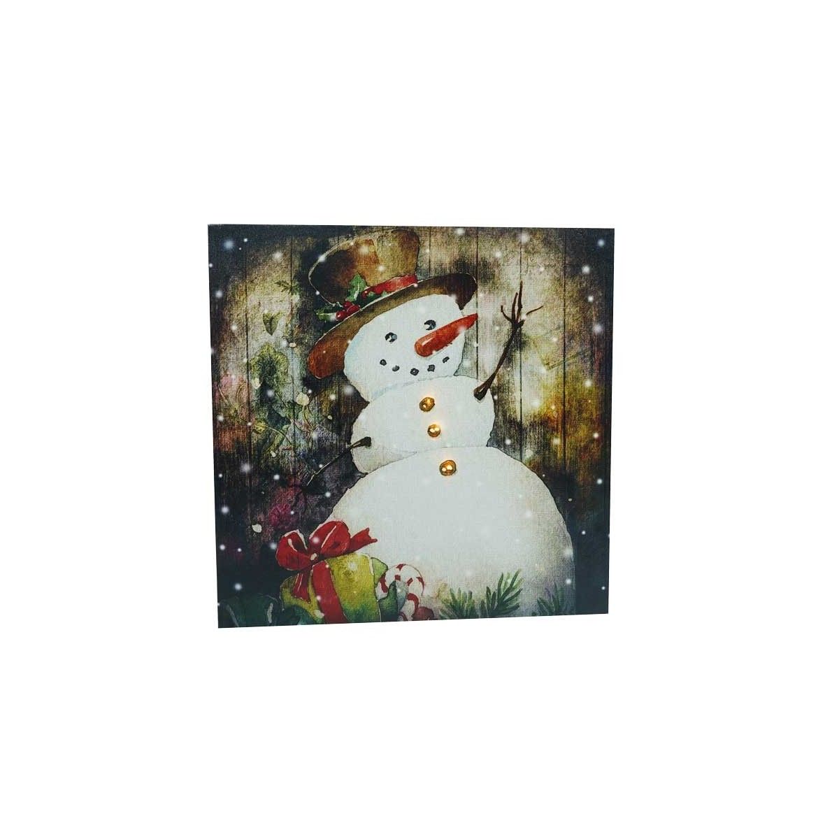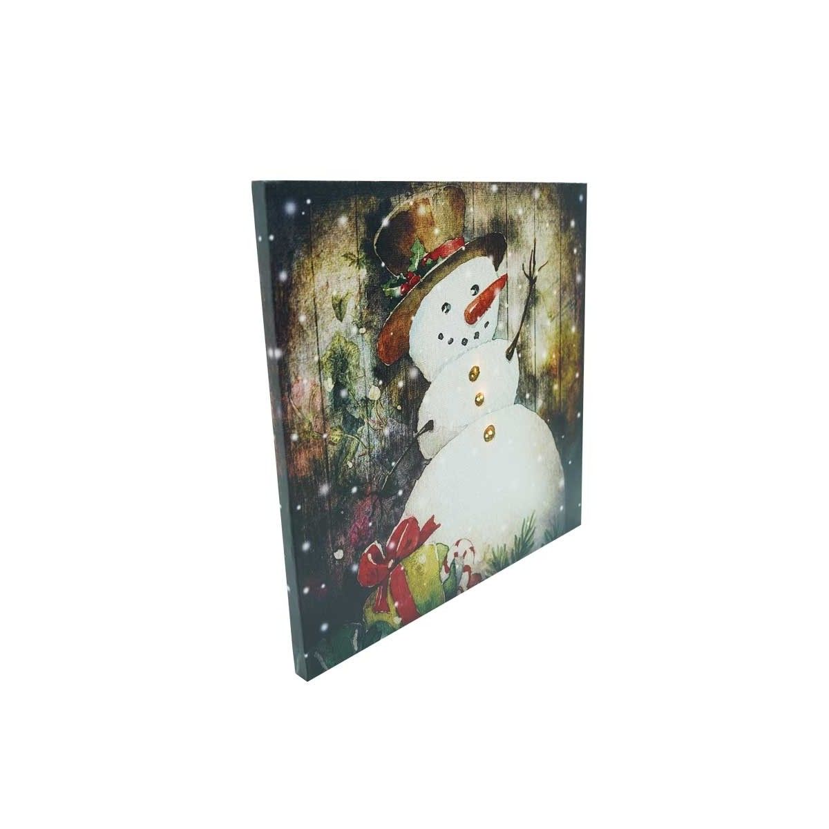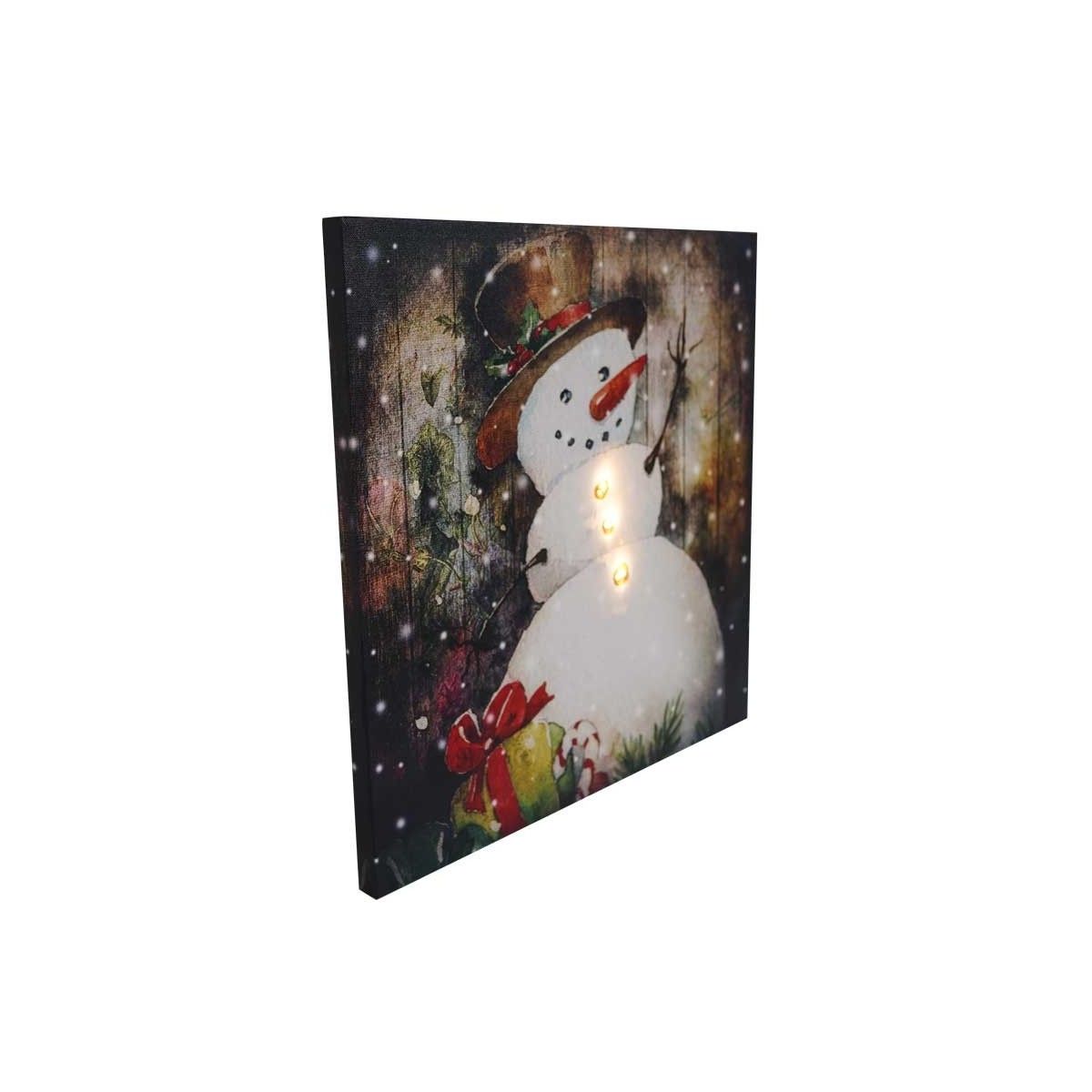Quadro Natalizio Luminoso Pupazzo di Neve con 3 Luci Led