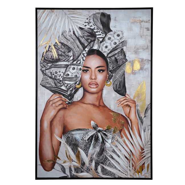 Questo quadro è una celebrazione della bellezza femminile, dell'identità culturale e della forza interiore. È perfetto per chi desidera aggiungere un tocco di eleganza e significato al proprio spazio, combinando arte e cultura in un'unica opera affascinante.