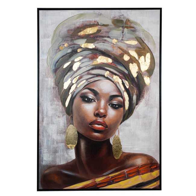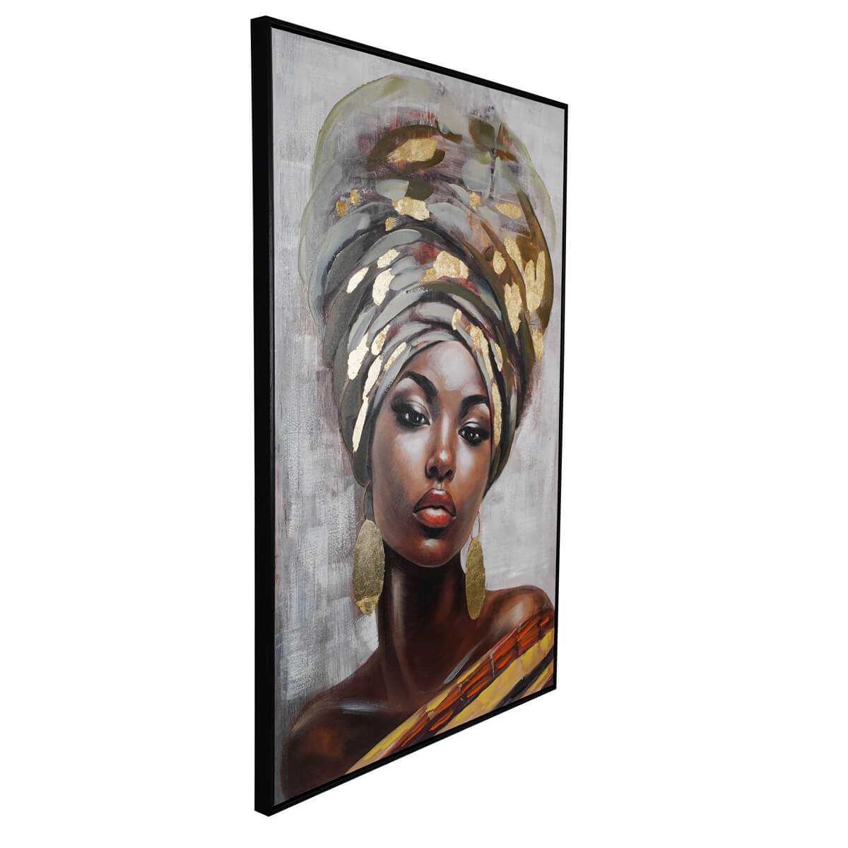 Eleganza Africana: Quadro di Donna con Copricapo e Dettagli Dorati - Dipinto a Mano su Tela 80x120 cm