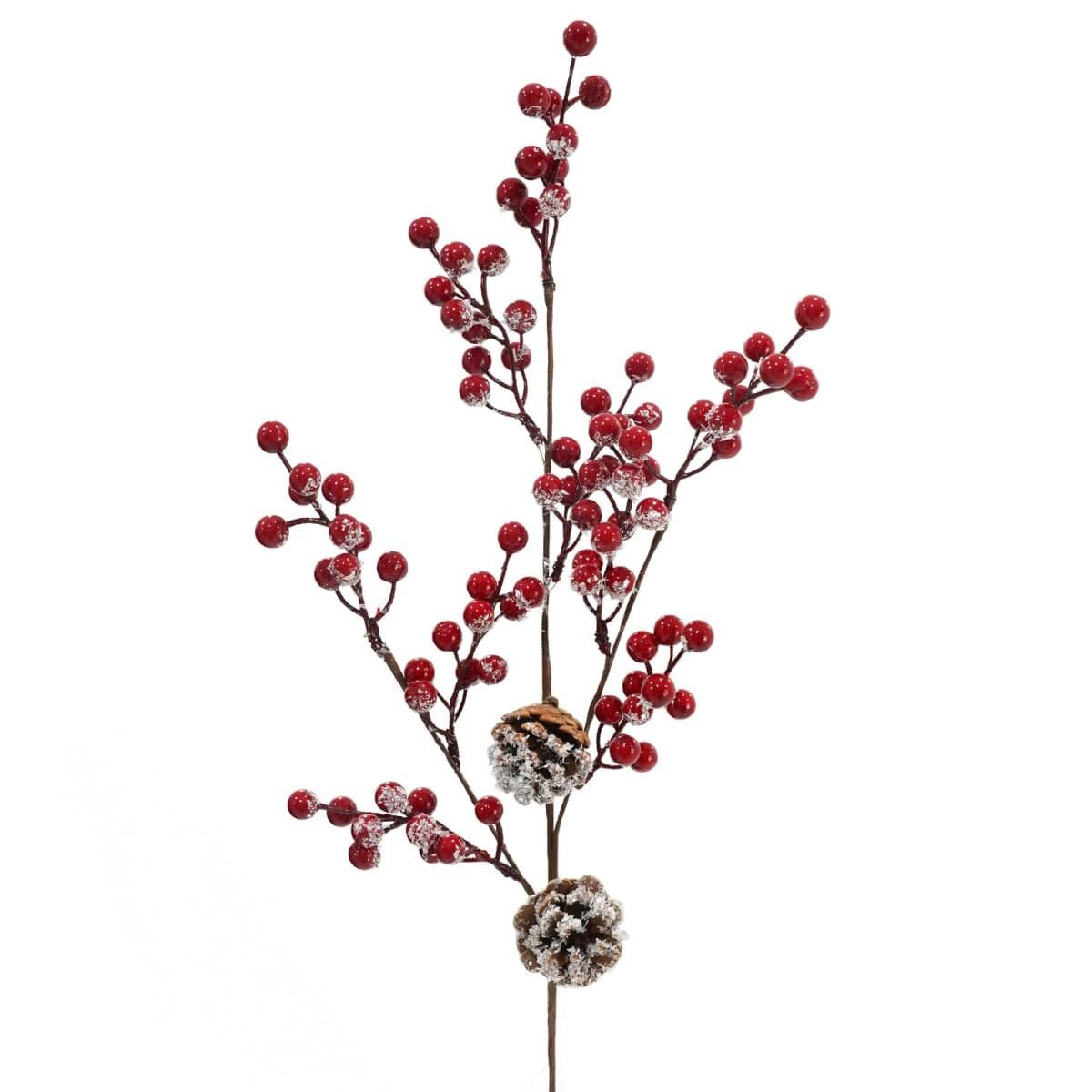 Ramo Innevato con Bacche Rosse e Pigne L.81 cm