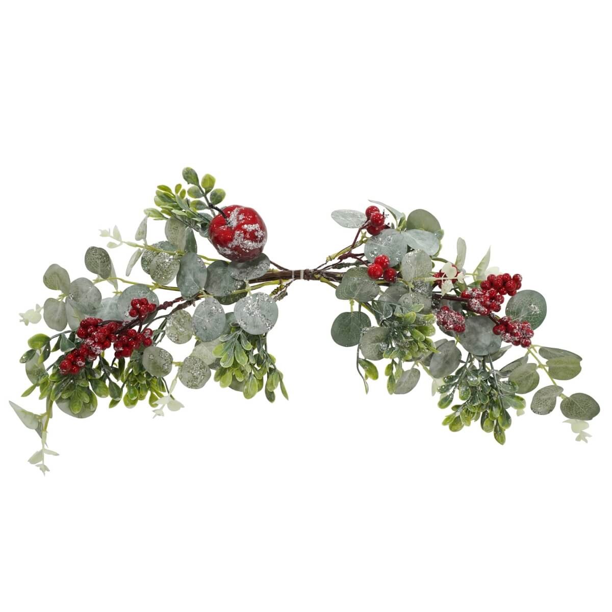 Swag con Foglie, Bacche e Mele con Glitter L.55 cm