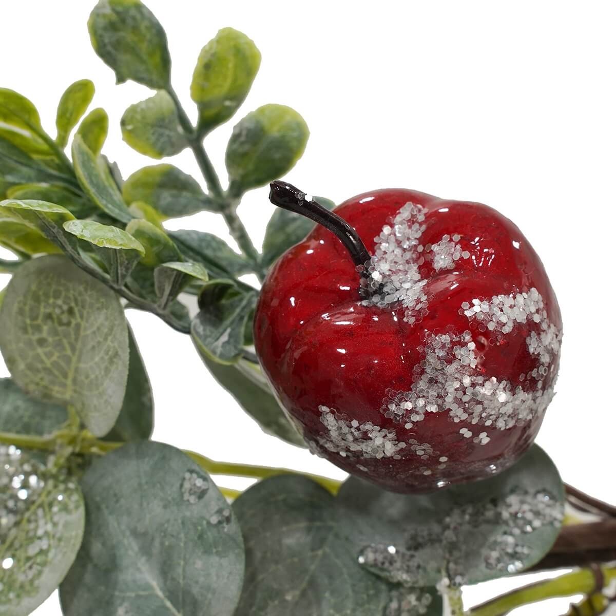 - Composizione decorativa con foglie verdi, bacche e mele rosse glitterate