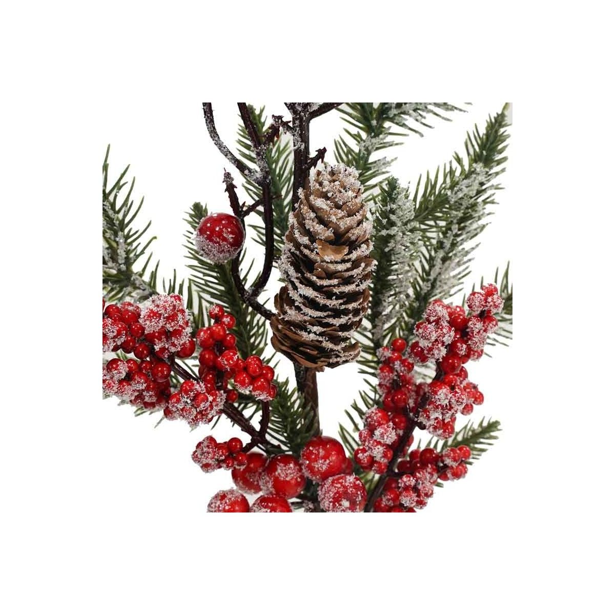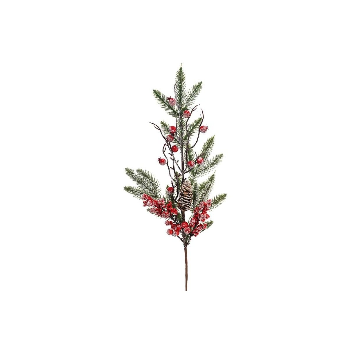 Ramo di Pino Innevato con Bacche Rosse L.76 cm