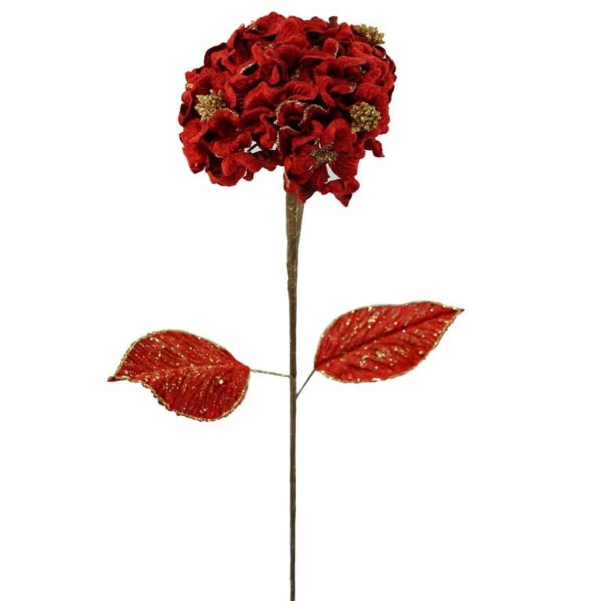 Ortensia Natalizia Decorativa in Velluto Rosso e Oro – Ramo Elegante H.60 cm