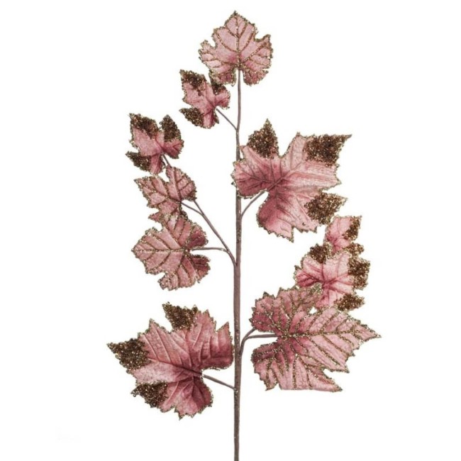 Aggiungi un tocco di eleganza raffinata alle tue decorazioni natalizie con questo ramo decorativo con foglie rosa impreziosite da dettagli dorati. Perfetto per chi ama uno stile chic e luminoso, questo ramo è ideale per arricchire alberi di Natale, composizioni floreali, ghirlande, centrotavola e allestimenti scenografici per la casa o per vetrine commerciali.