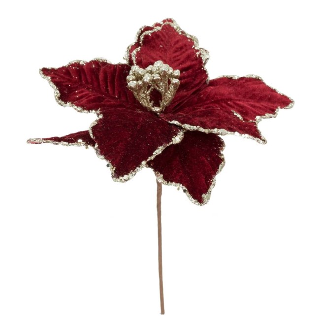 Raffinato ed elegante, questo fiore natalizio in velluto bordeaux e argento è la scelta ideale per impreziosire le tue decorazioni di Natale con uno stile sofisticato e ricercato. Le morbide foglie in velluto, rifinite da delicati profili argentati e da un cuore luminoso, donano profondità e brillantezza a ogni composizione.