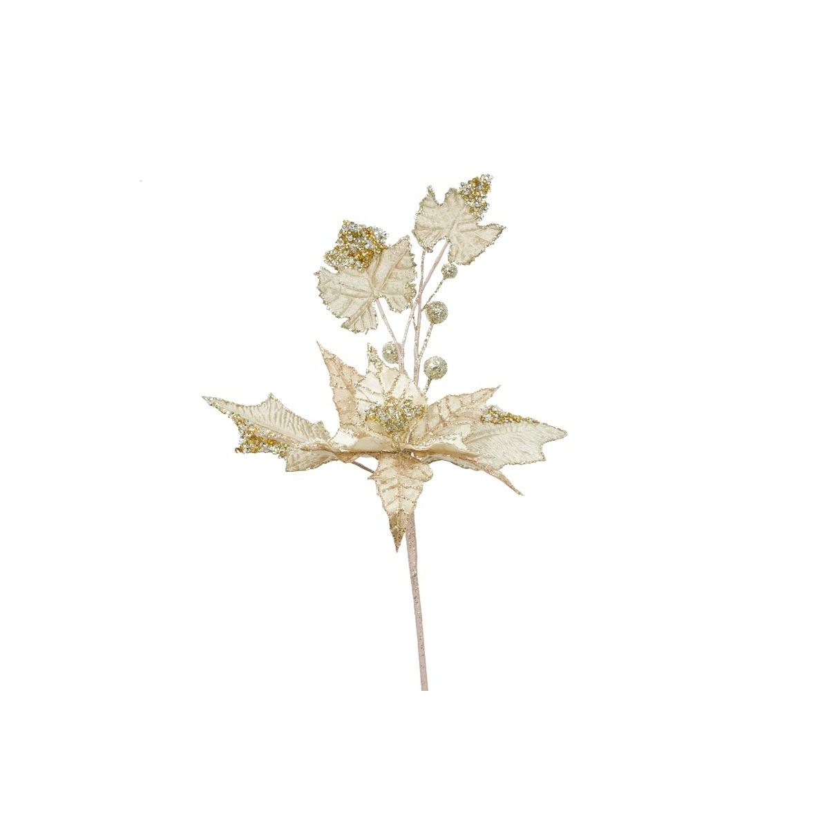 Ramo con Stella di Natale in Velluto Beige H.43 cm