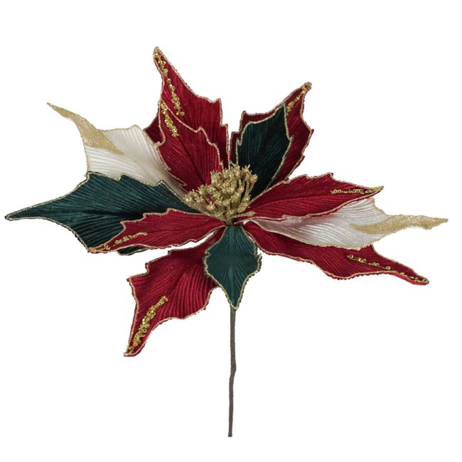Poinsettia Natalizia in Velluto Rosso, Verde e Oro