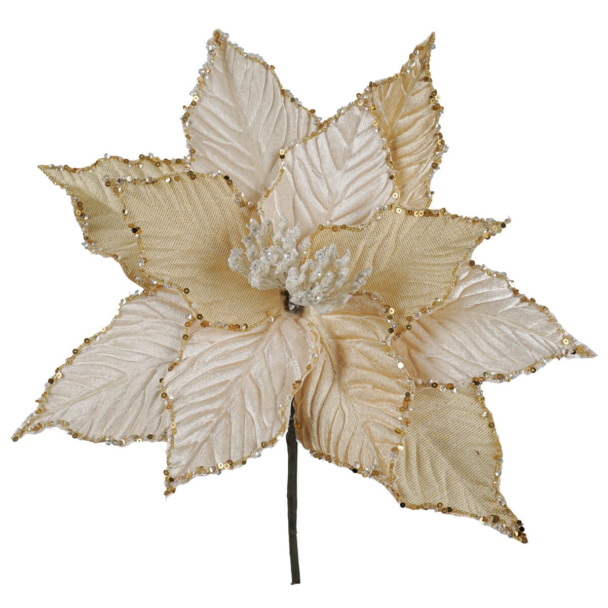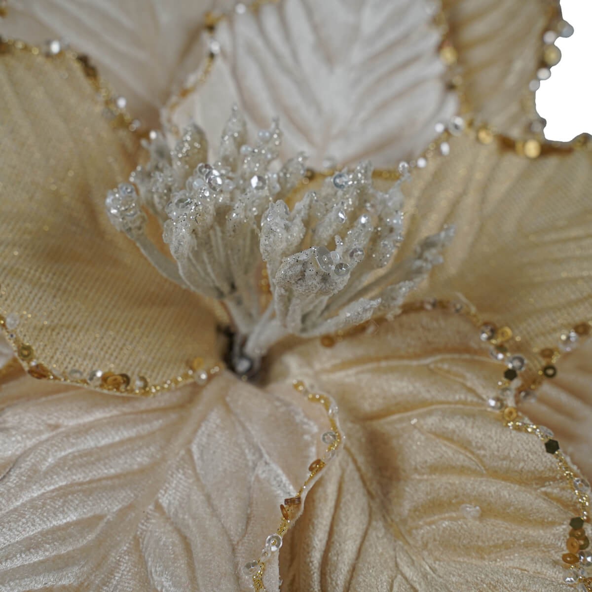 Poinsettia Natalizia in Velluto Bianco e Champagne con Glitter Oro – Fiore Decorativo 60 cm