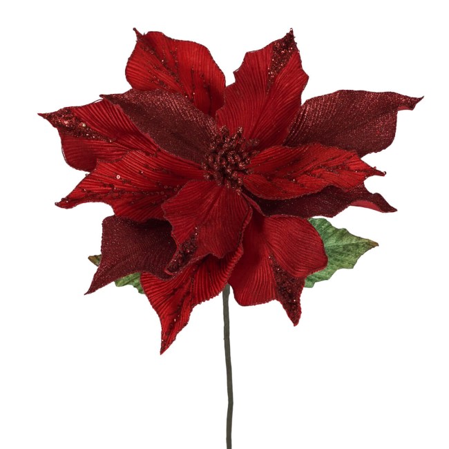 Poinsettia Natalizia in Velluto Rosso con Glitter – Fiore Decorativo 60 cm