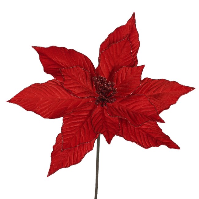 Porta un tocco di raffinatezza e tradizione alle tue decorazioni con la poinsettia natalizia in velluto rosso da 60 cm. Realizzata con petali ampi e vellutati, arricchiti da dettagli glitterati che riflettono la luce, questa stella di Natale è l’accessorio perfetto per valorizzare l’albero, le ghirlande e i centrotavola delle feste.