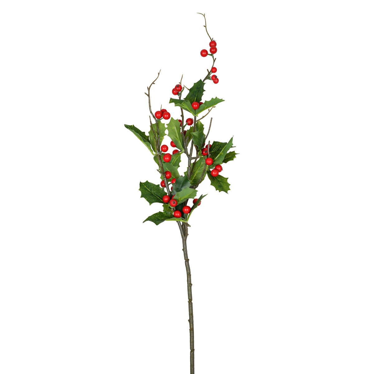 Rametto Natalizio con Bacche Rosse e Foglie Verdi in PE – 80 cm
