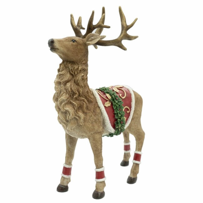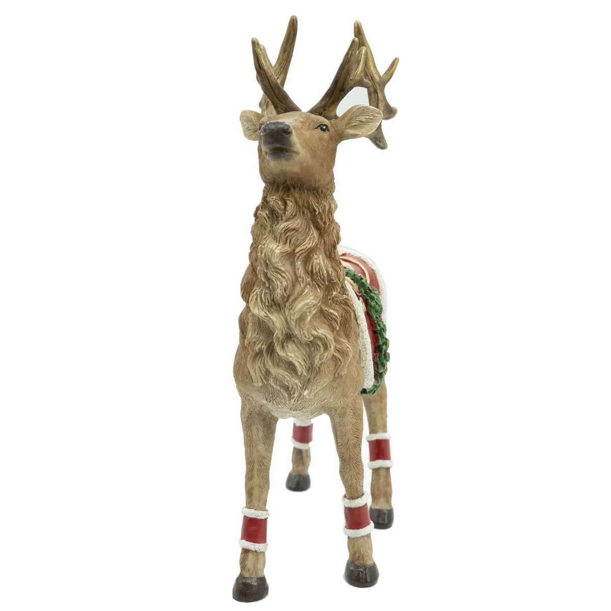 Renna Natalizia Decorativa in Resina con Sella Rossa, Bianca e Verde – H.28 cm