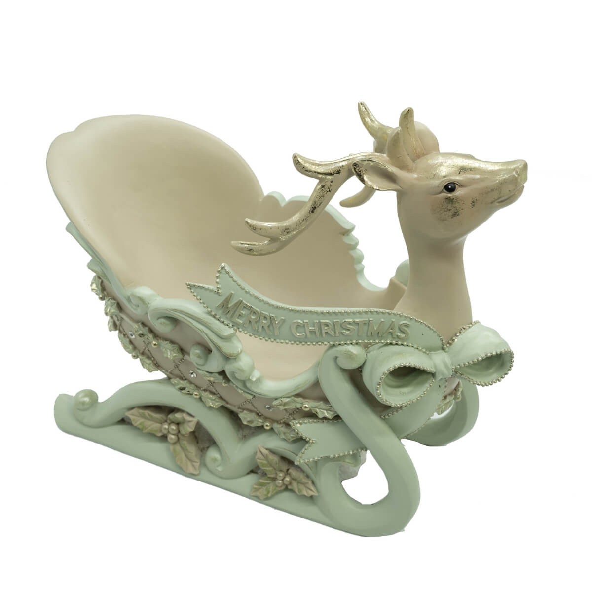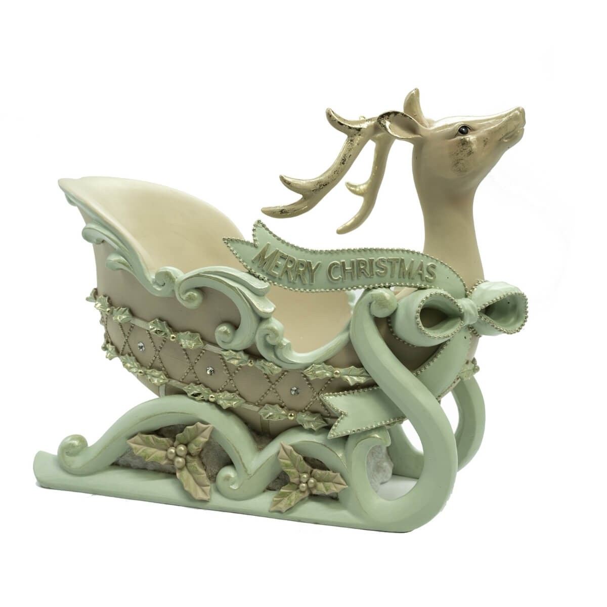 Slitta di Natale con Renna in Resina Beige e Verde Acqua