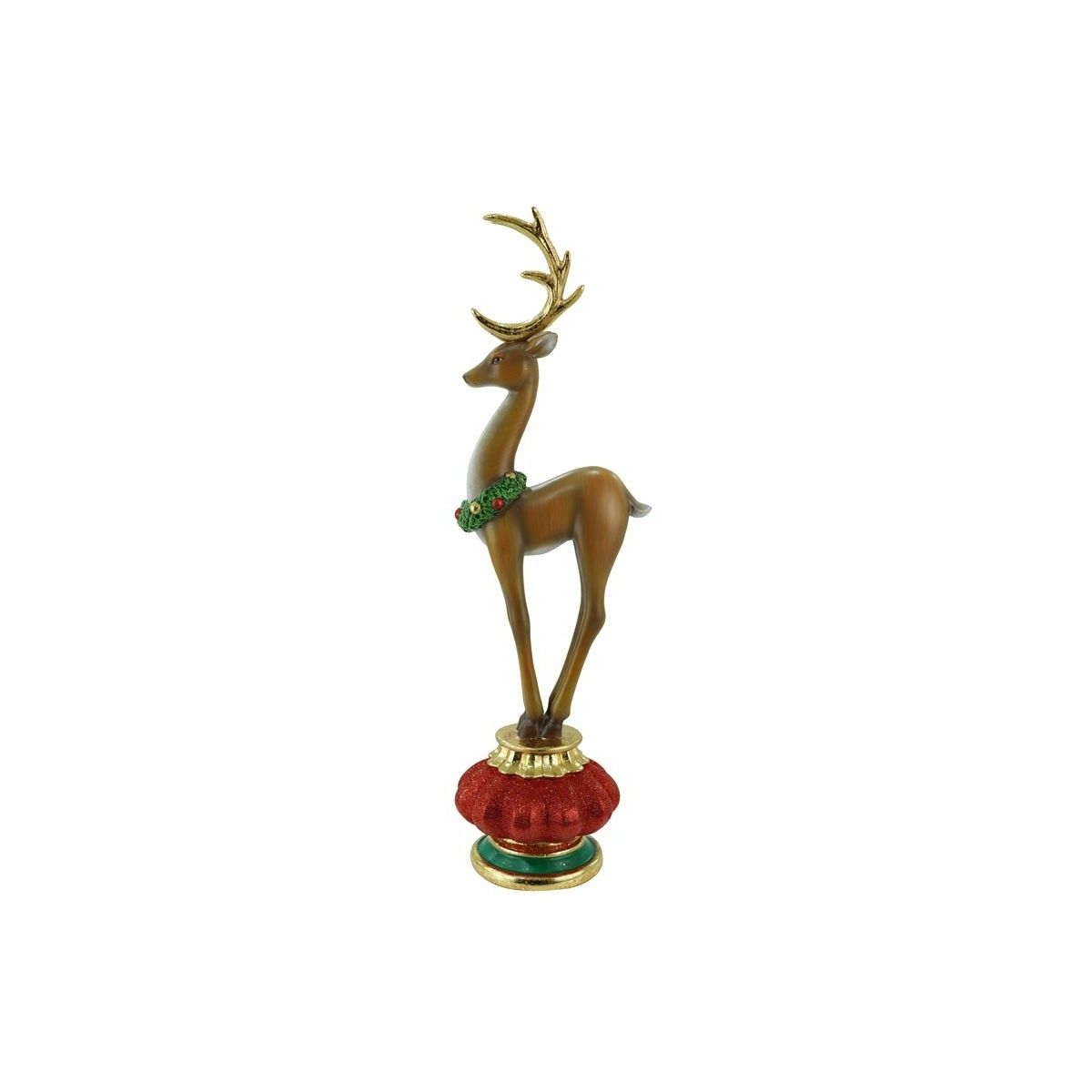Renna Natalizia con Corna Oro su Piedistallo in Resina H.53,2 cm