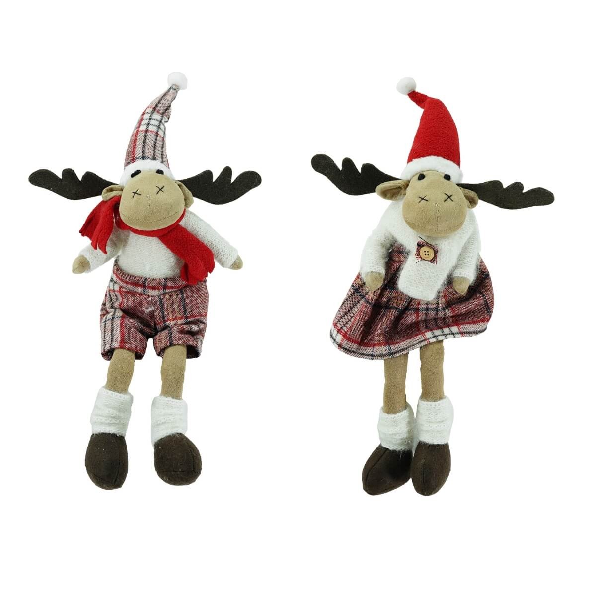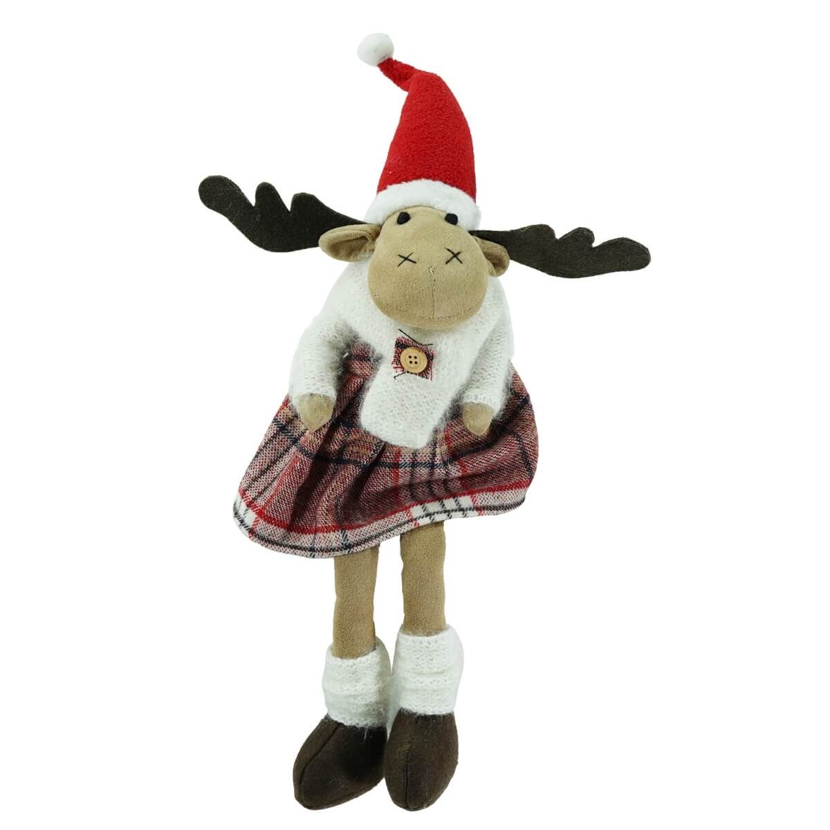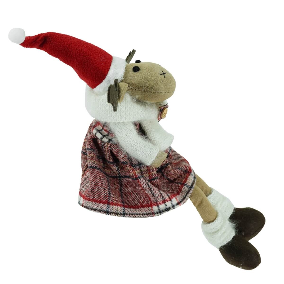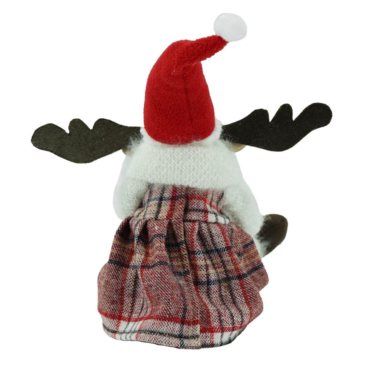 Renna Natalizia Seduta Maschio o Femmina con Abito a Quadri H.45 cm