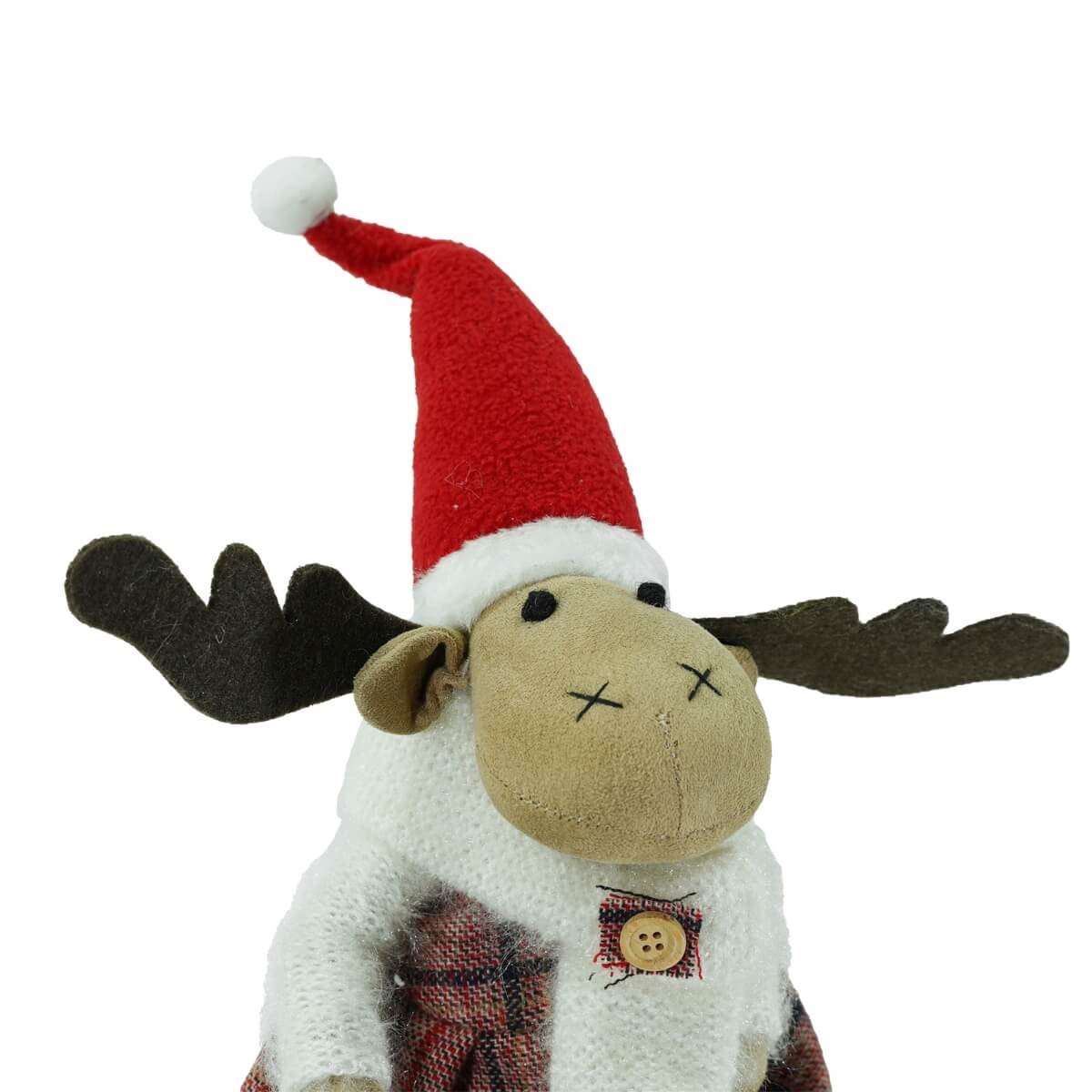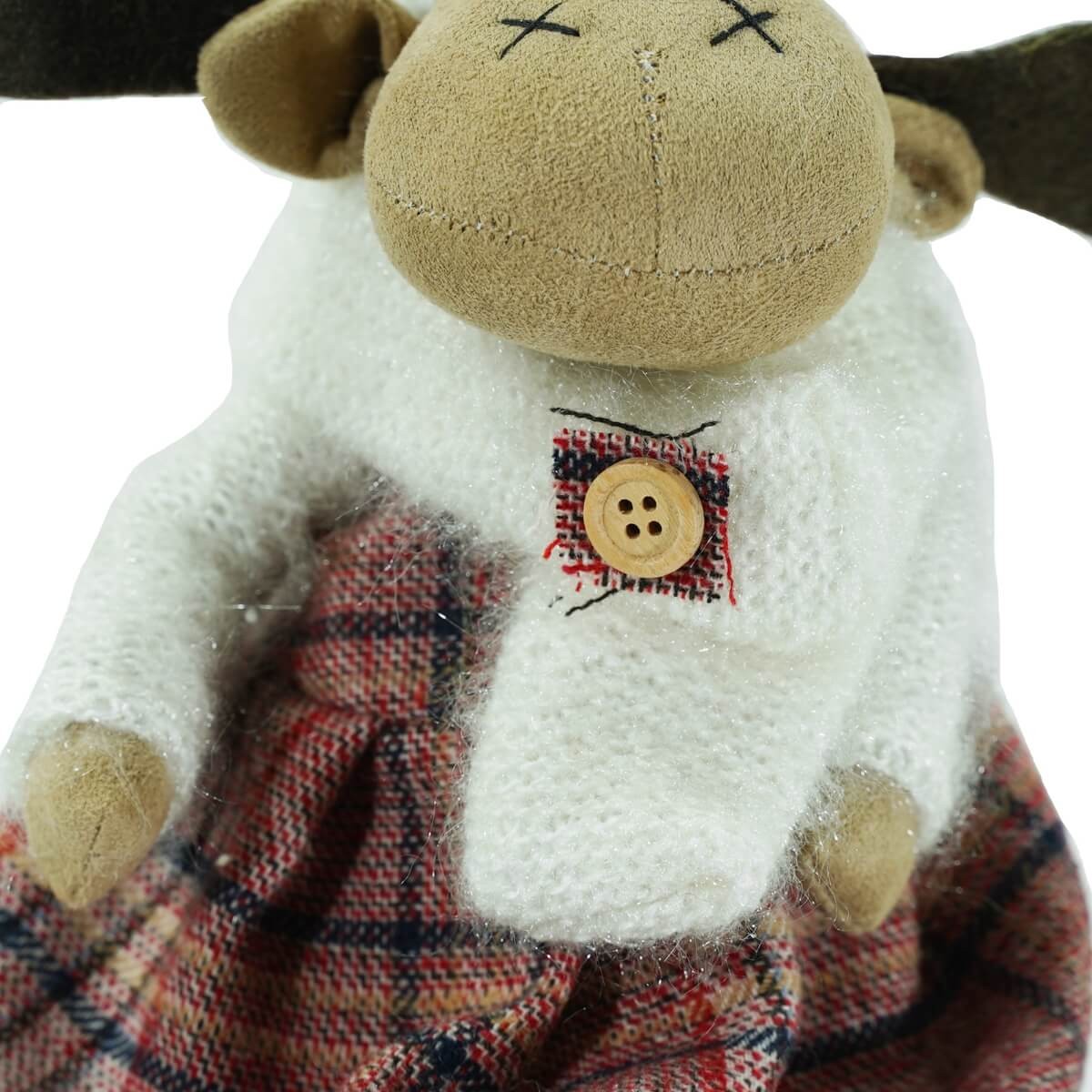 Renna Natalizia Seduta in Tessuto H.45 cm – Maglia Bianca e Outfit a Quadri | Decorazione di Natale Elegante