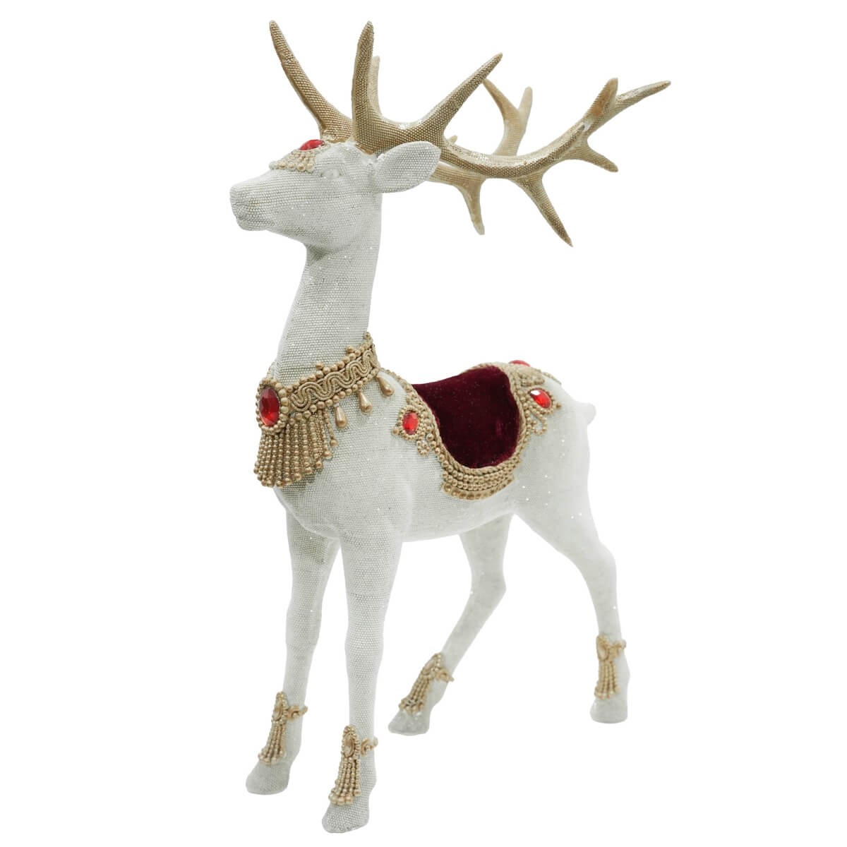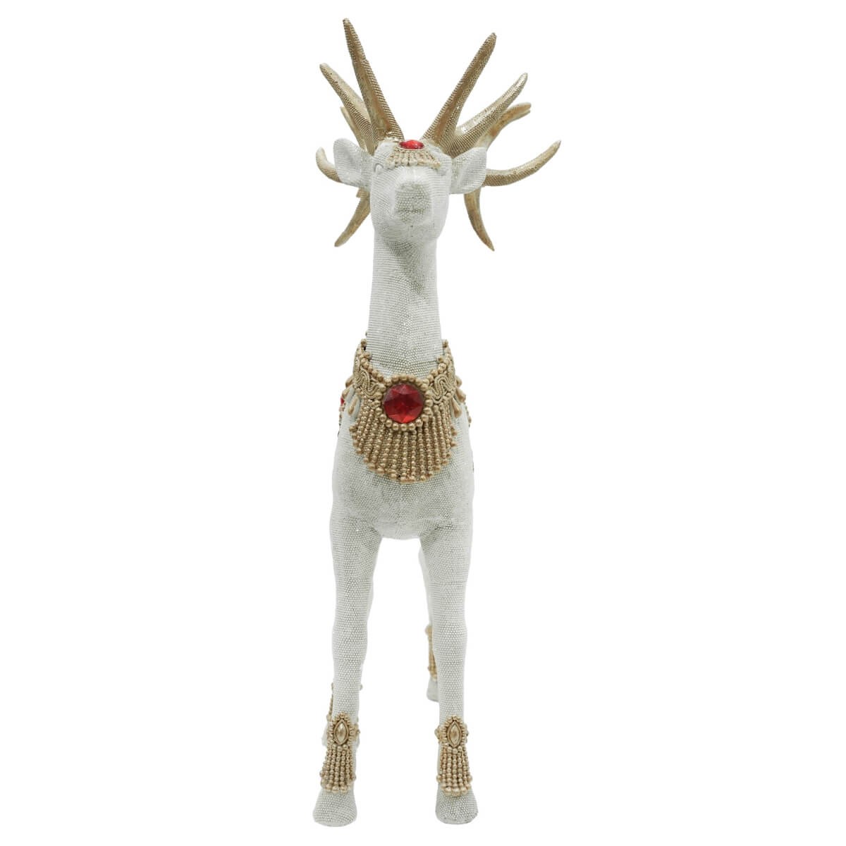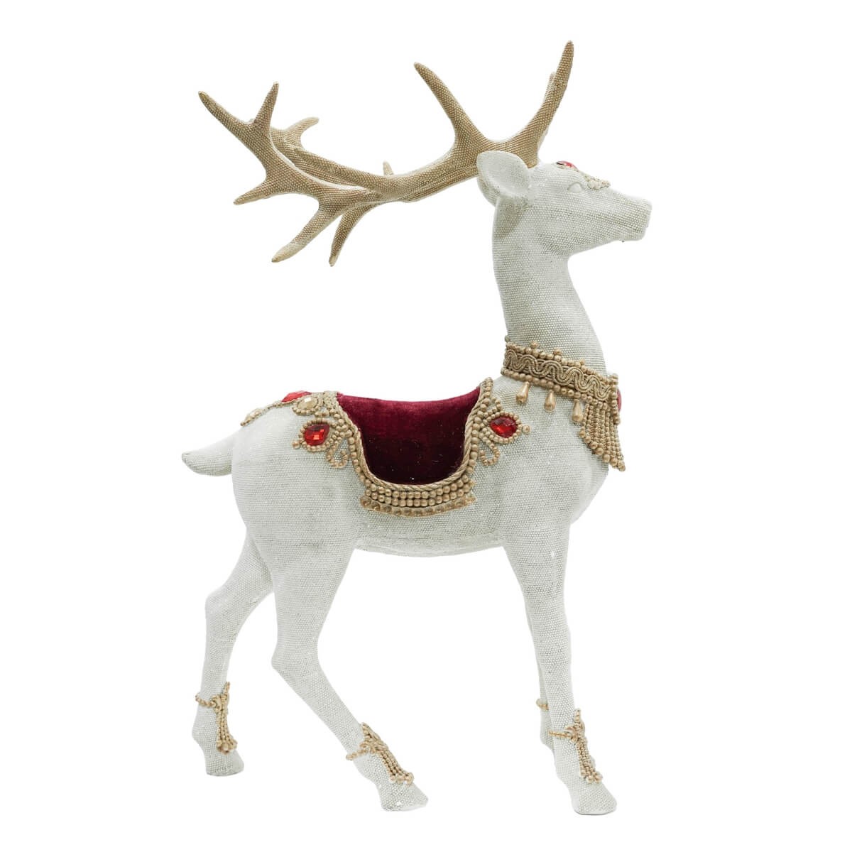 Renna Natalizia Bianca in Resina con Sella Bordeaux H.40,5 cm