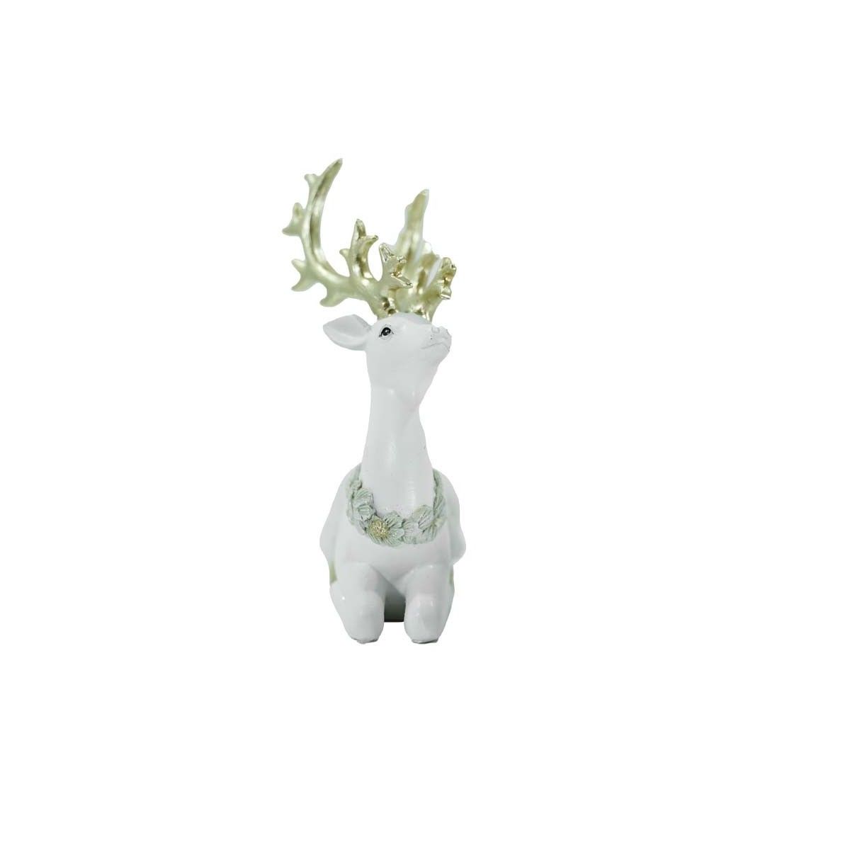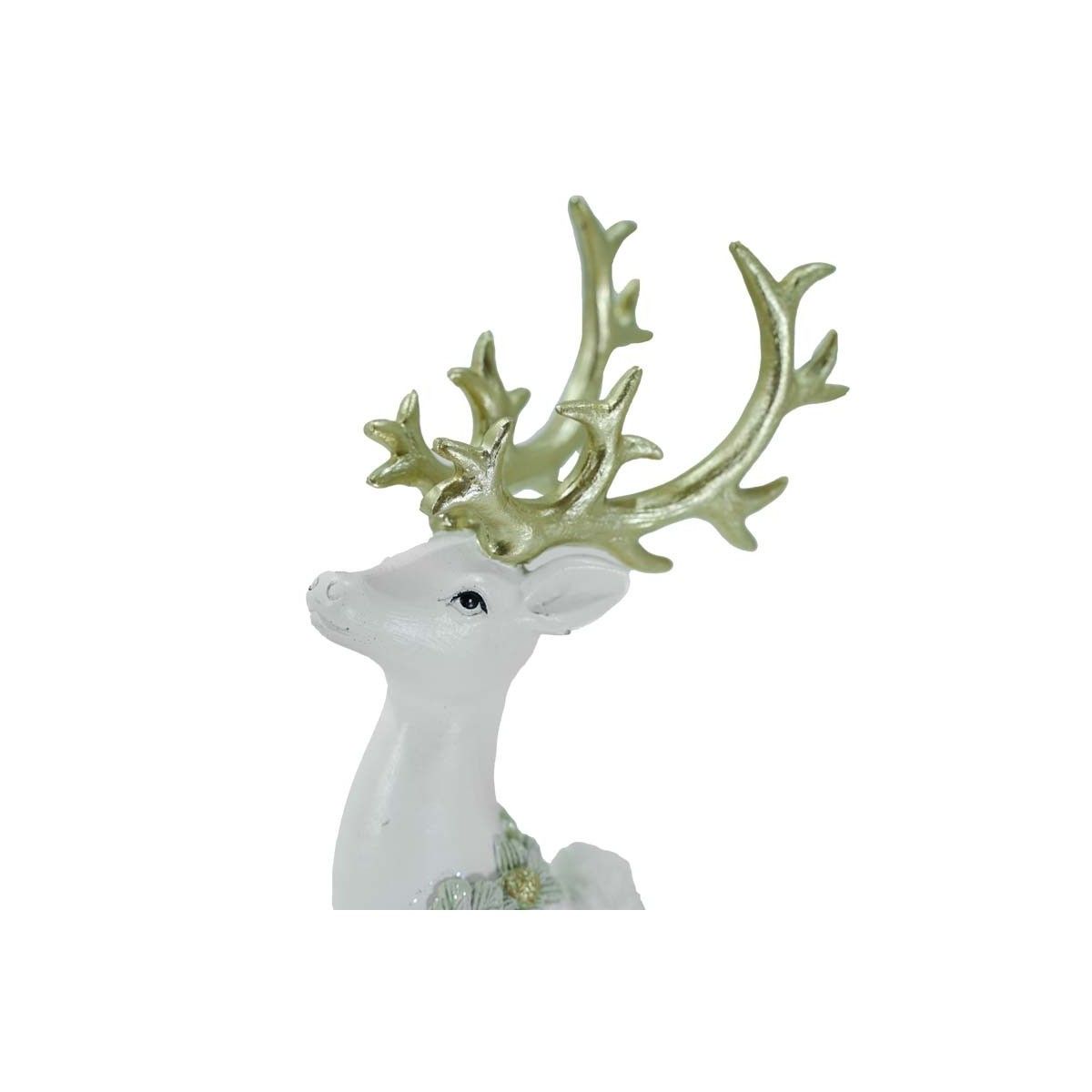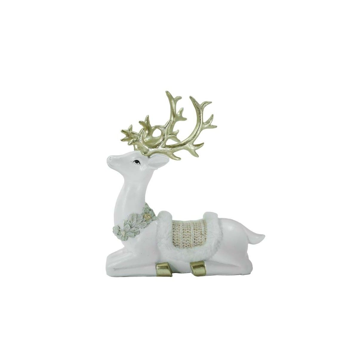 Renna Natalizia Bianca Seduta con Corna Oro H.18 cm