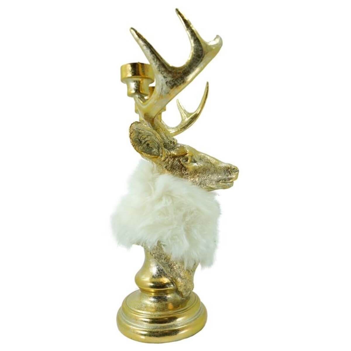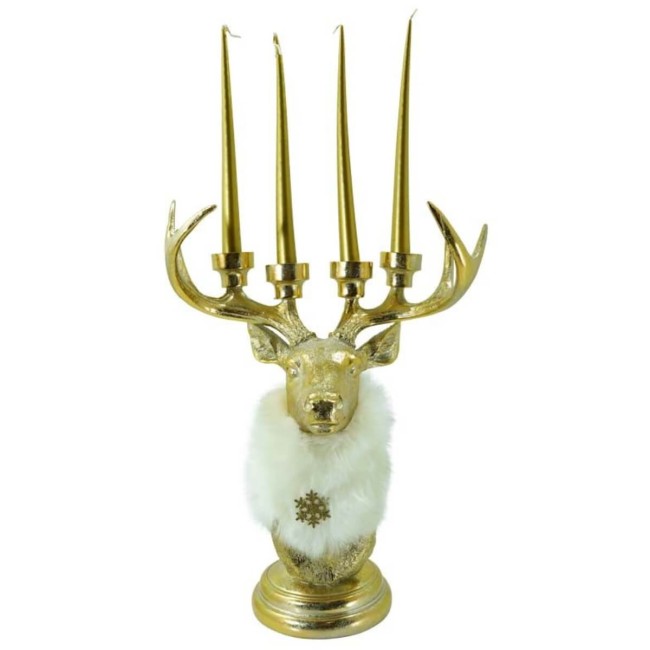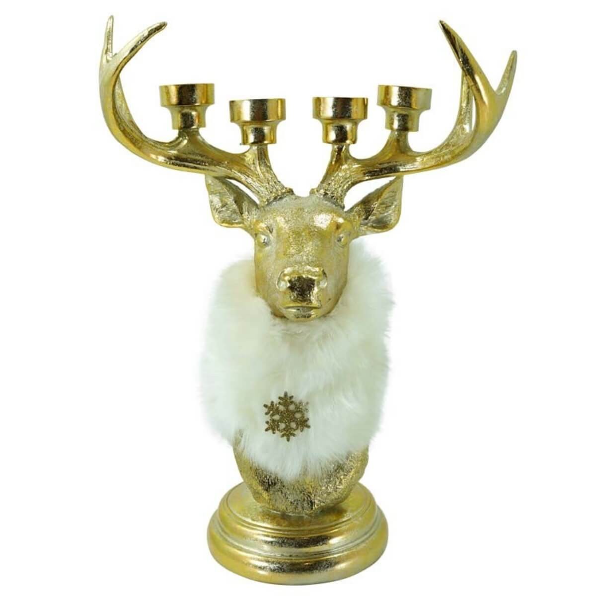 Renna Candelabro di Natale Oro e Bianco in Resina H.53 cm
