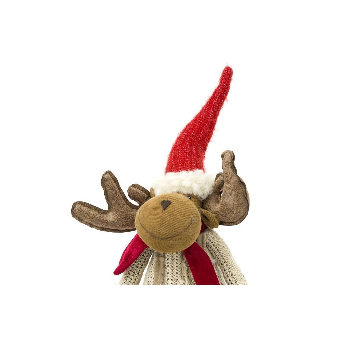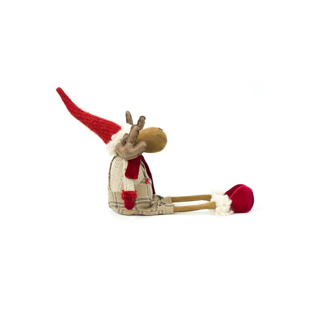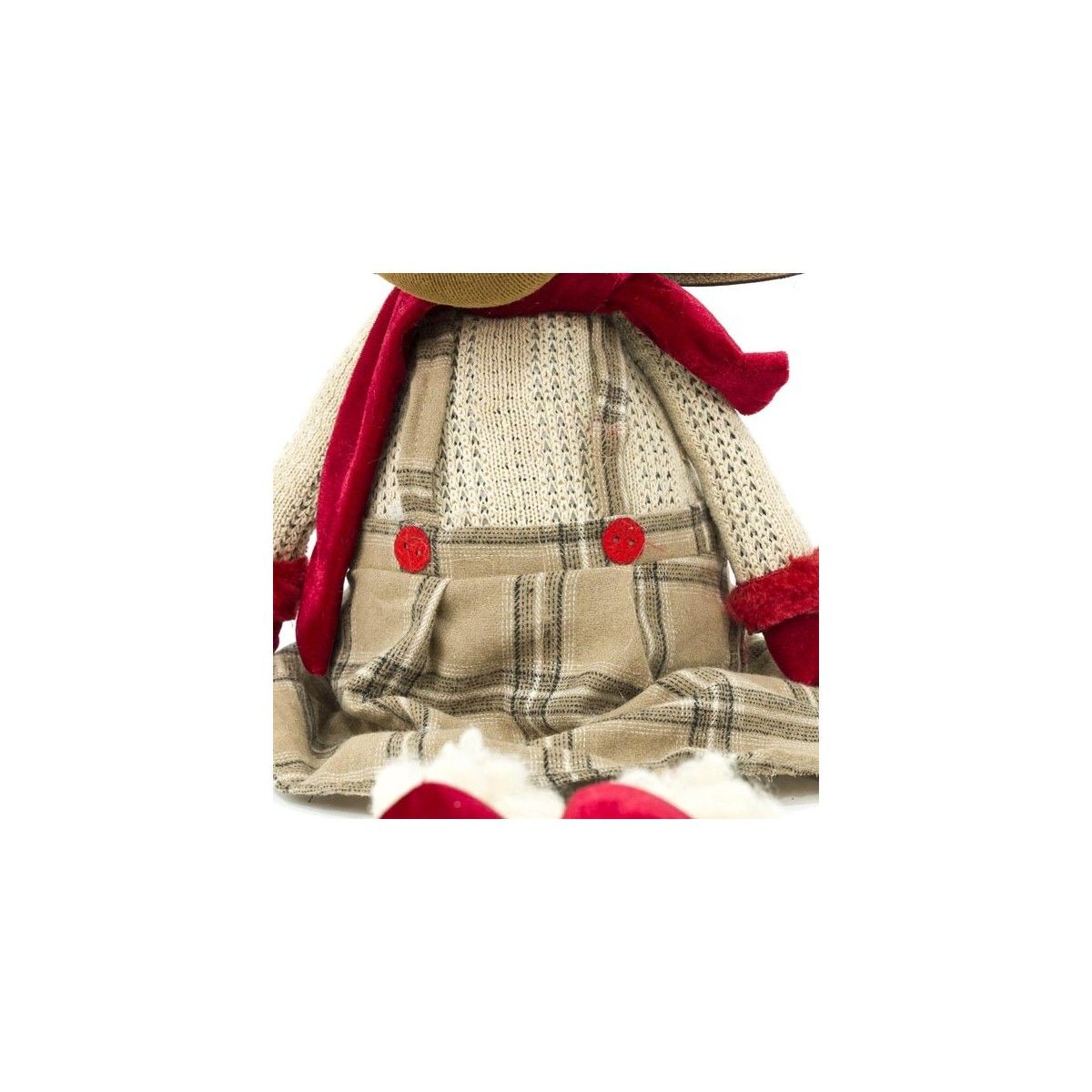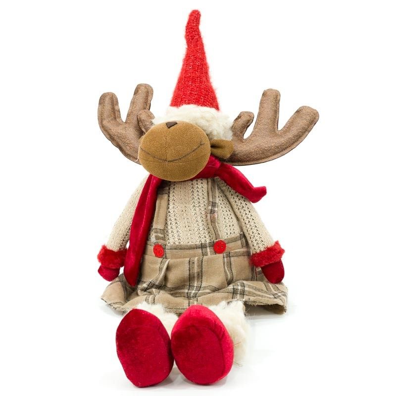 Renna Natalizia Seduta con Abito Beige a Quadri H.77 cm