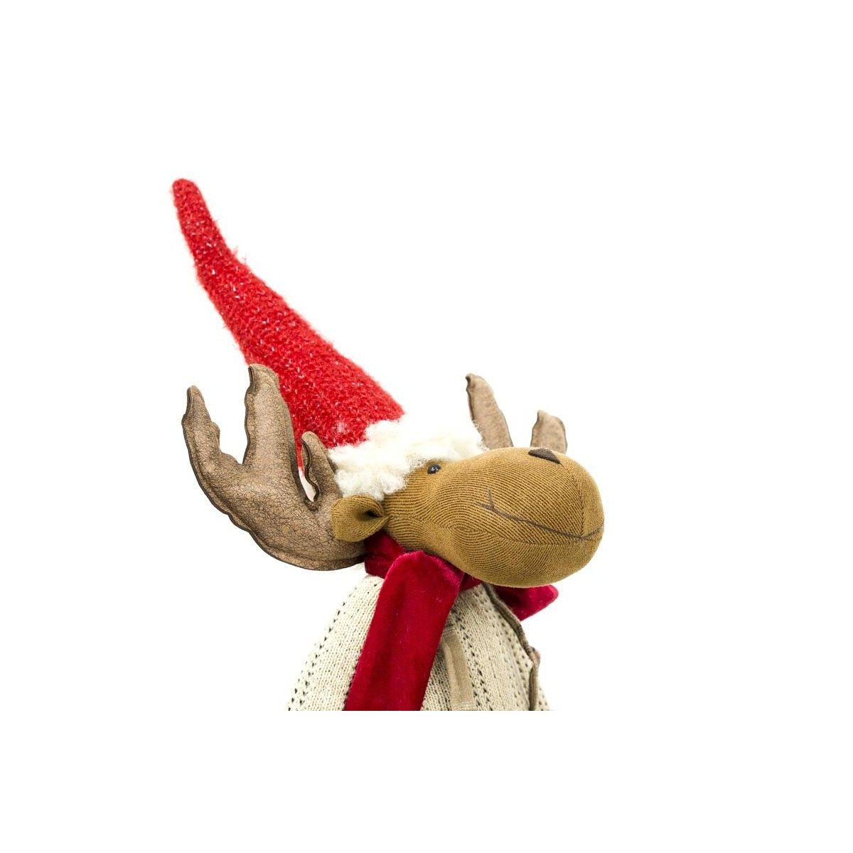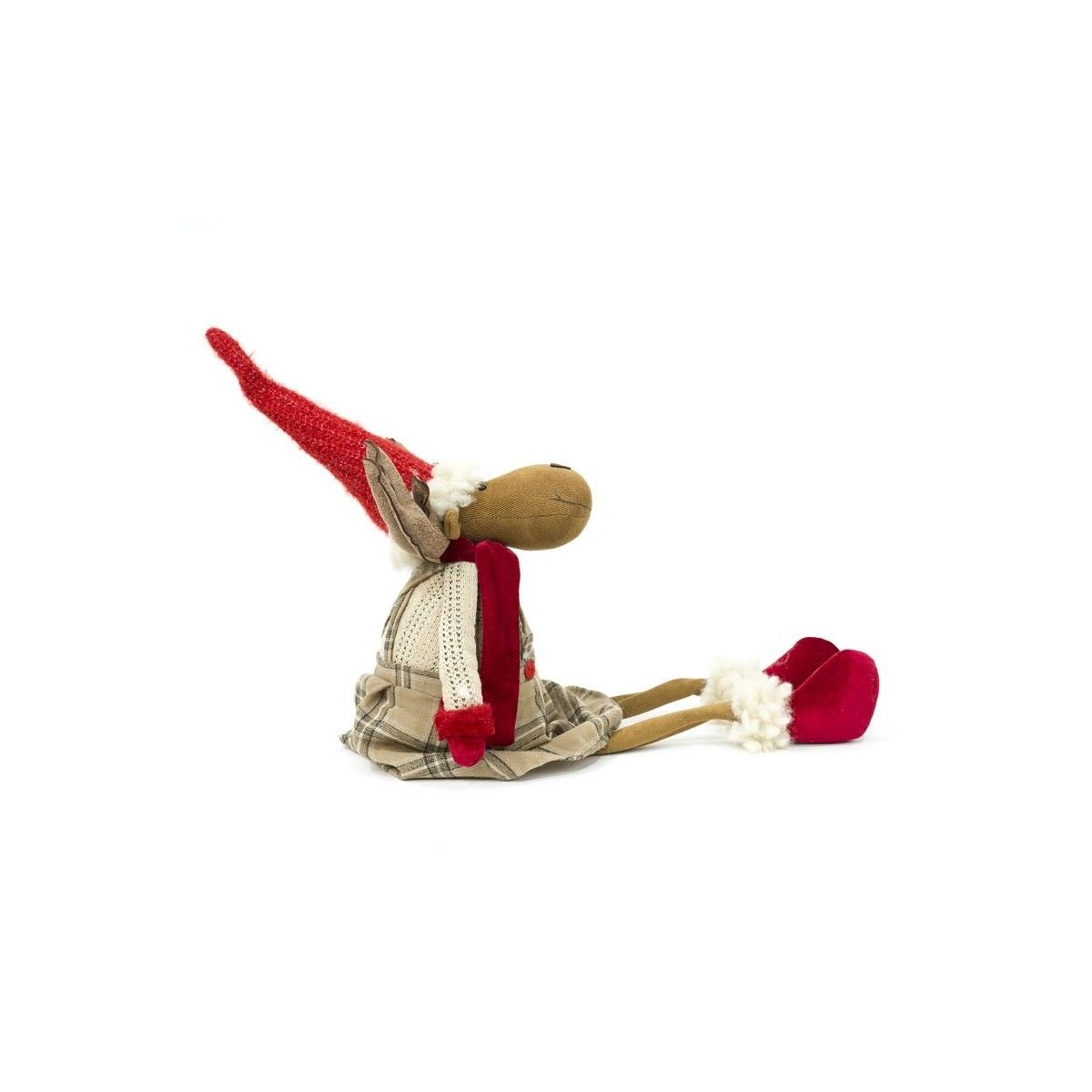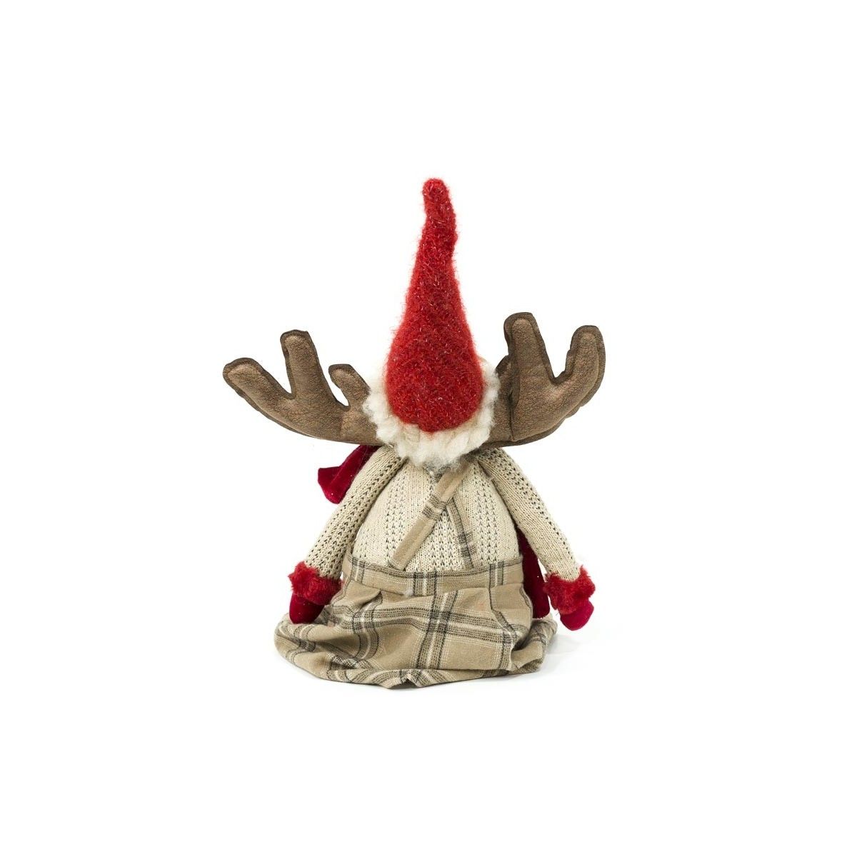 Renna Natalizia Seduta con Abito Beige a Quadri H.77 cm