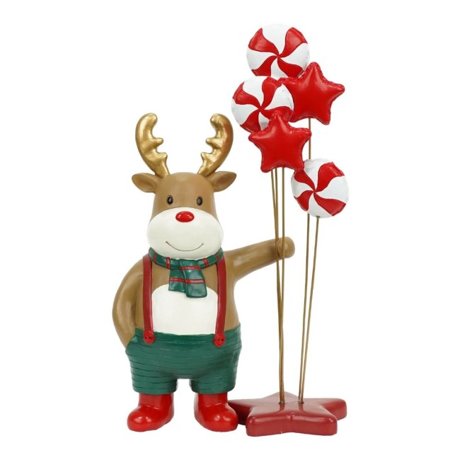 Renna Natalizia con Palloncini in Resina H.19 cm
