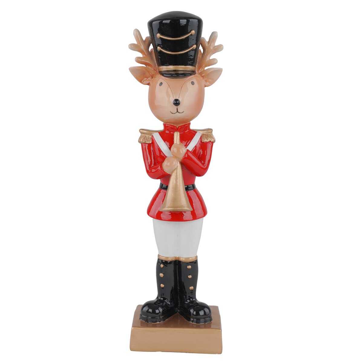 Renna Schiaccianoci Natalizia in Resina con Tromba H.27,5 cm