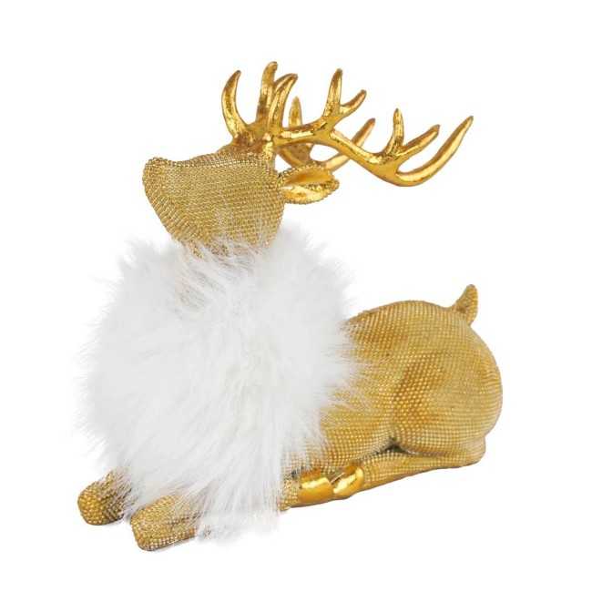 Renna natalizia in resina oro H.16 cm – Decorazione elegante per un Natale scintillante