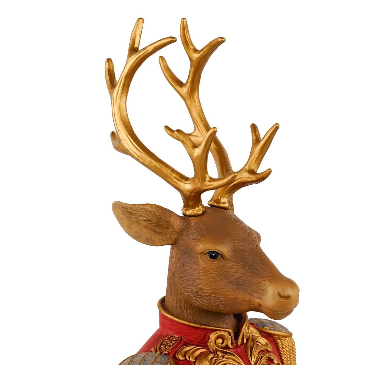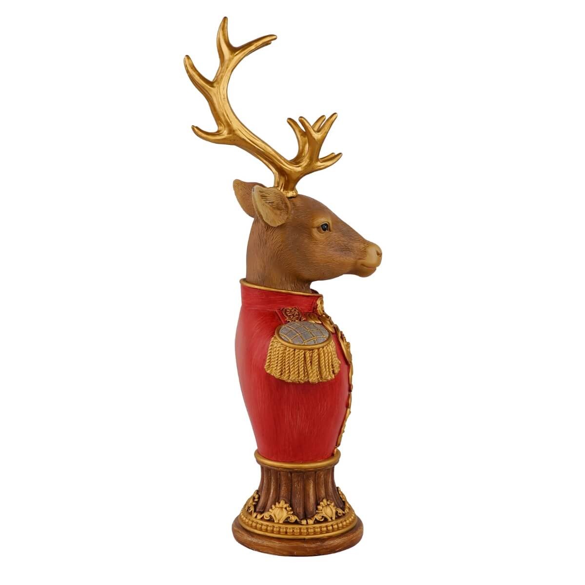 Busto Renna Natalizia in Resina H36,5 cm – Decorazione di Natale Elegante Rosso e Oro