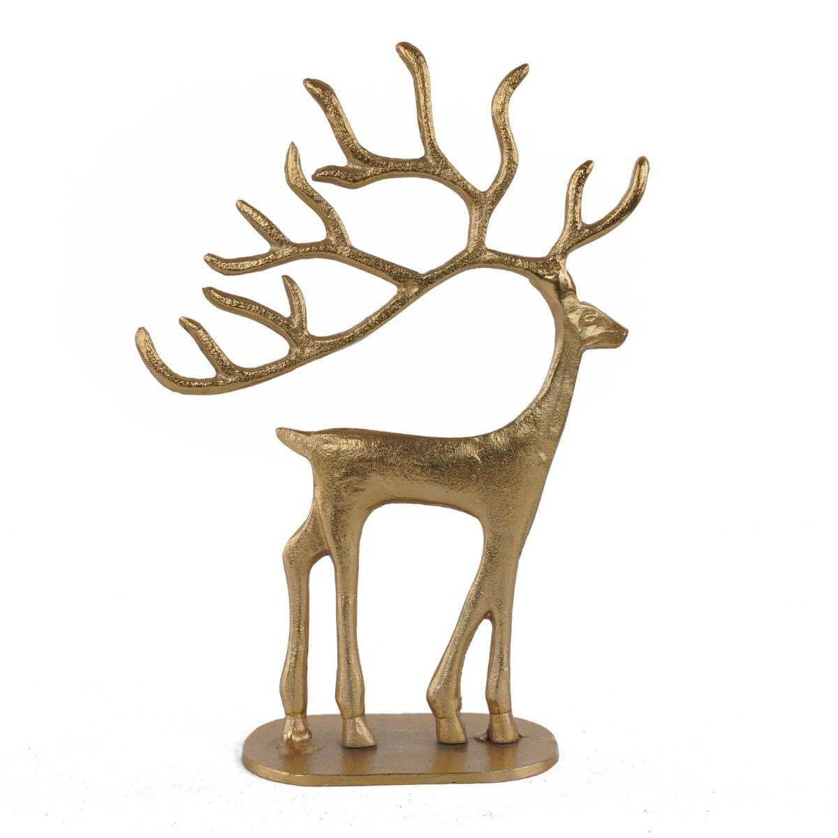 Statuetta di Renna Natalizia in Alluminio Dorato - Design Elegante 21x8xH.31,5 cm