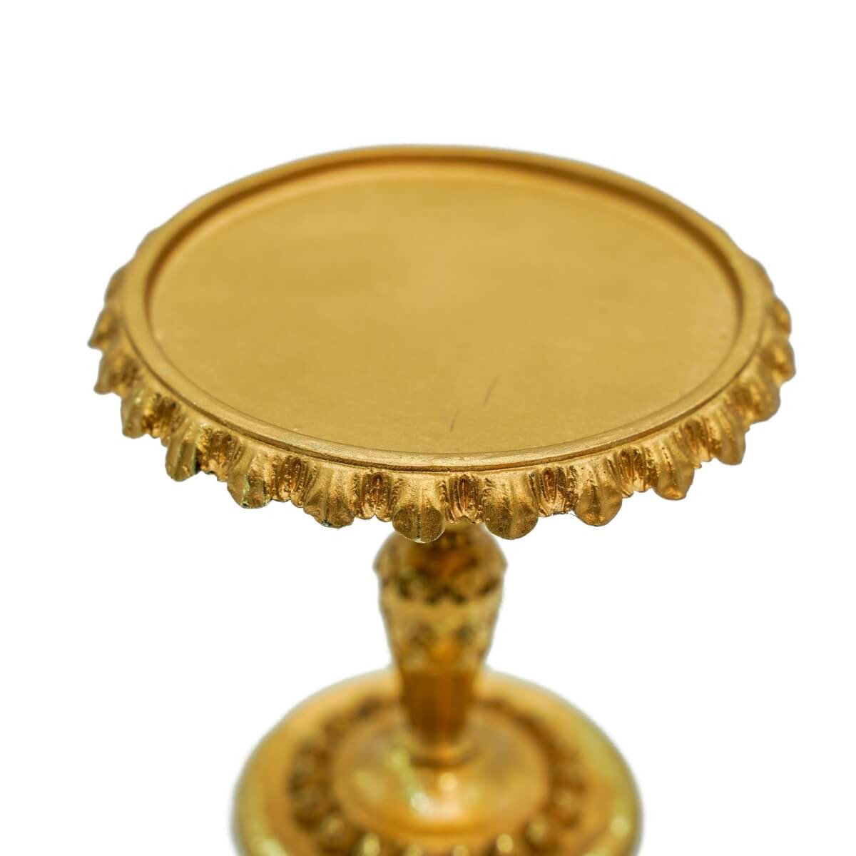 Con le sue dimensioni compatte (Ø 9,5 x H.10 cm), questa alzatina è ideale per esporre piccoli dolcetti finti, segnaposti, candele o altri elementi decorativi natalizi. Il suo stile dorato e dettagliato la rende perfetta per tavole imbandite, centrotavola, vetrine, allestimenti o boutique che cercano un elemento chic e scenografico.